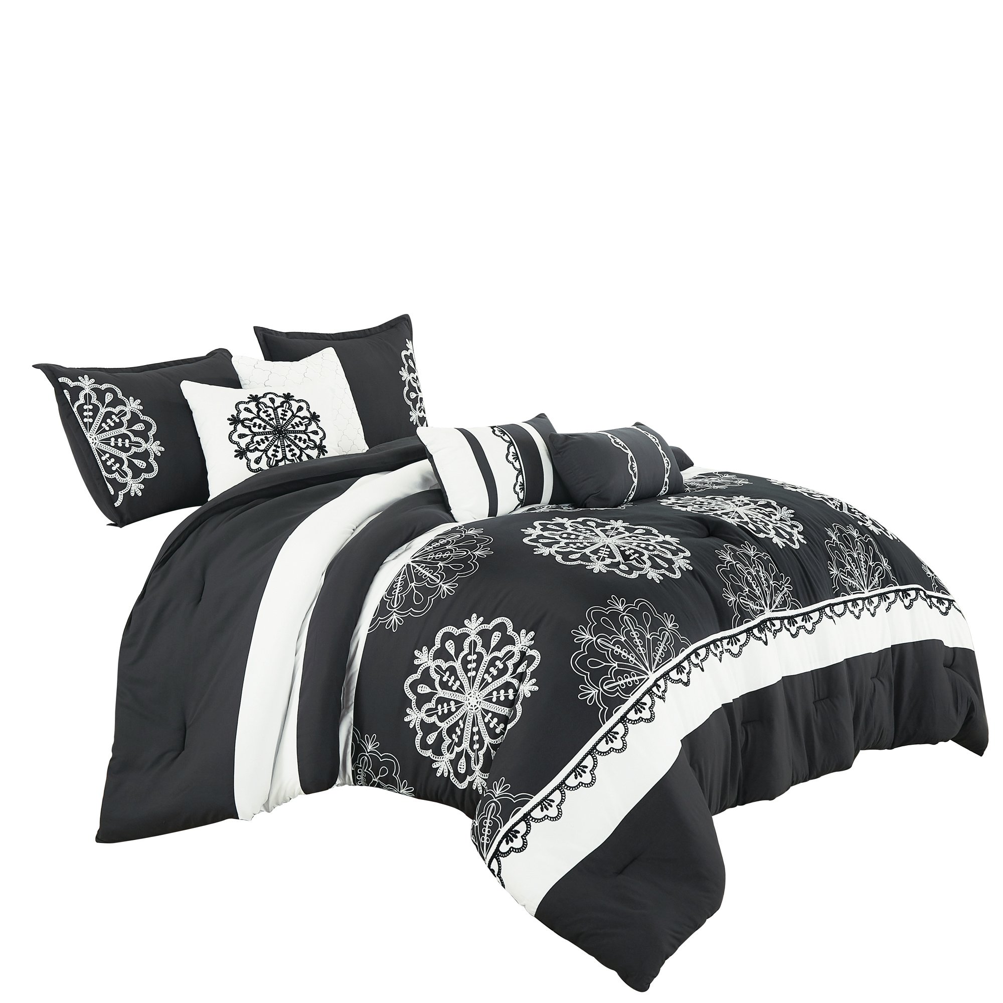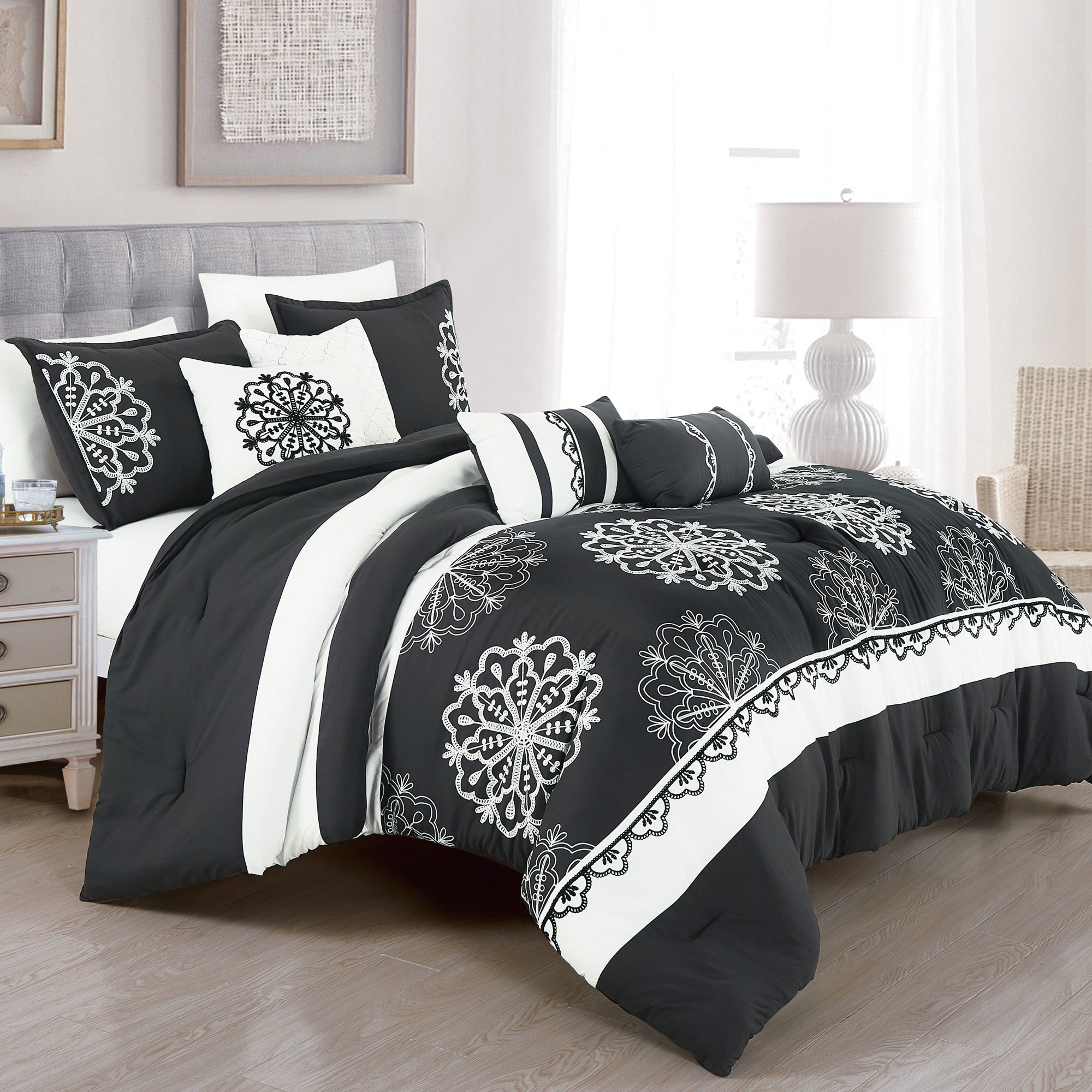Update your bedroom with the Beautiful motif 7-Piece Comforter Set for a modern look.