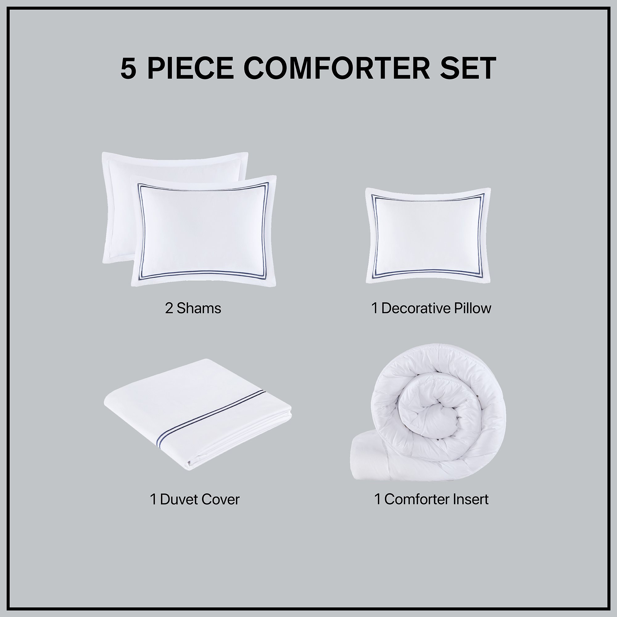 5 piece comforter Set - 1 comforter insert, 1 duvet cover, 2 shams and 1 matching decorative pillow