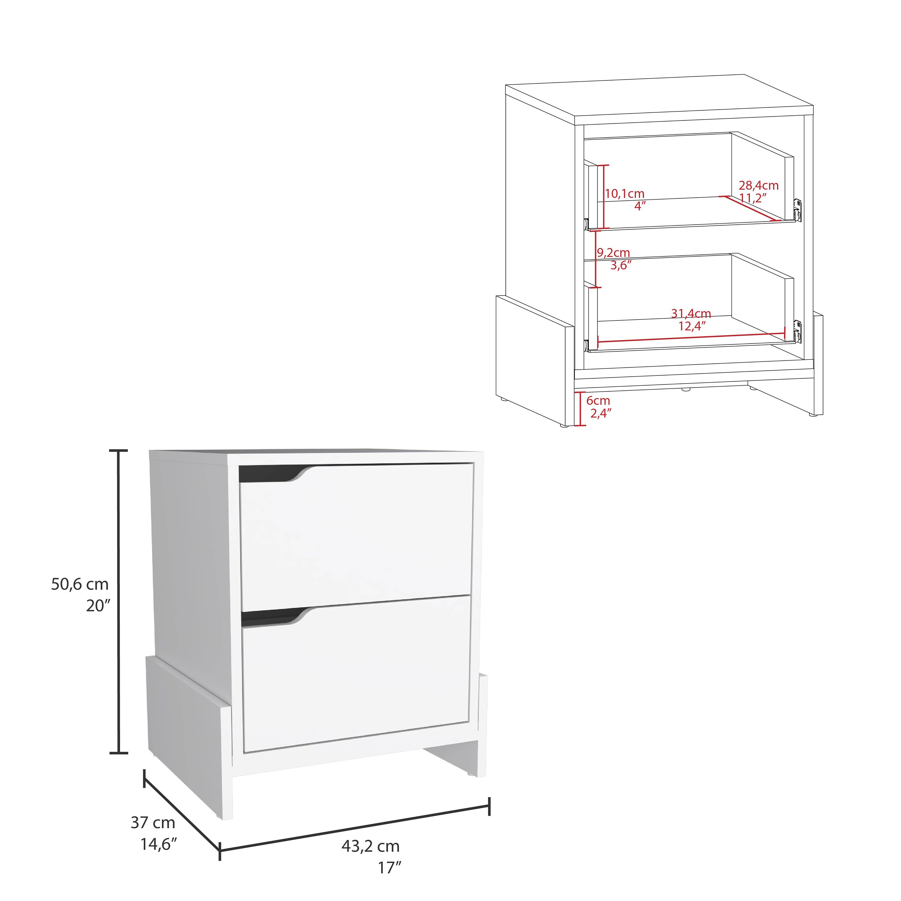 Dual-Drawer Storage, this nightstand features two spacious drawers, each measuring 12.4"W x 11.2"D, providing ample storage for personal items, nighttime essentials, or reading materials, keeping your bedroom neat and clutter-free.