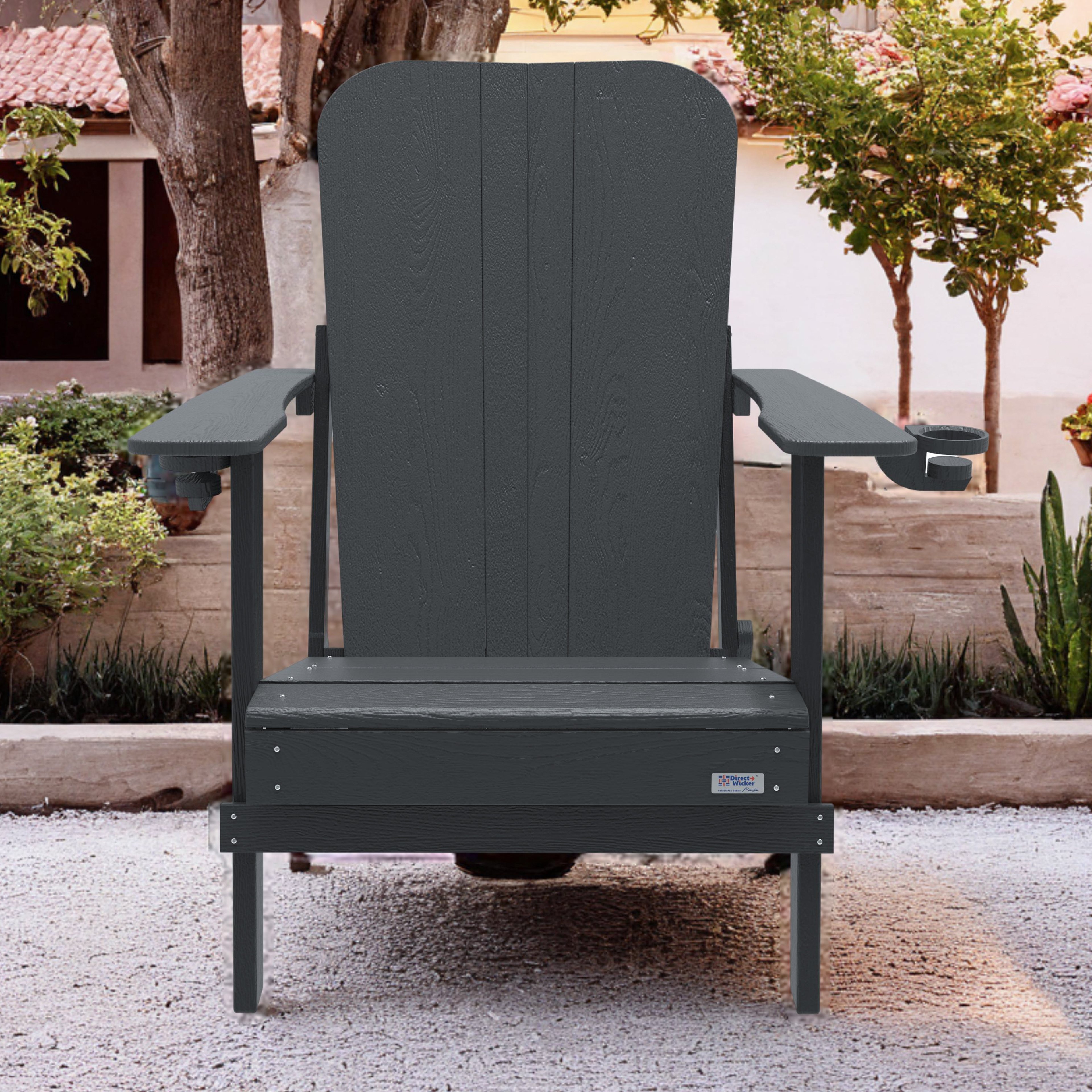 Outdoor Patio HDPE Adirondack Chair, Armrests with Cup Holders & Phone Slots