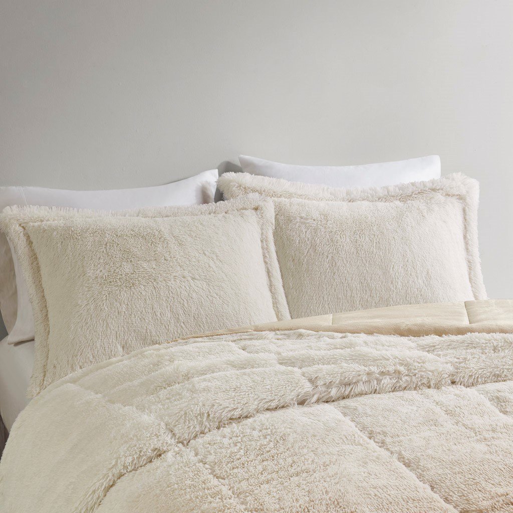 Create a cozy and comfy space with the Brielle Shaggy Faux Fur Comforter Mini Set. This shaggy fur comforter features an ombre design with a soft, warm faux mink reverse, bringing you ultimate warmth and comfort. The set includes matching shams that coordinate with the comforter. The hypoallergenic polyester filling in the comforter contains no allergens and is treated to be dustproof. Machine washable for easy care, this faux fur comforter cradles you in lush comfort.