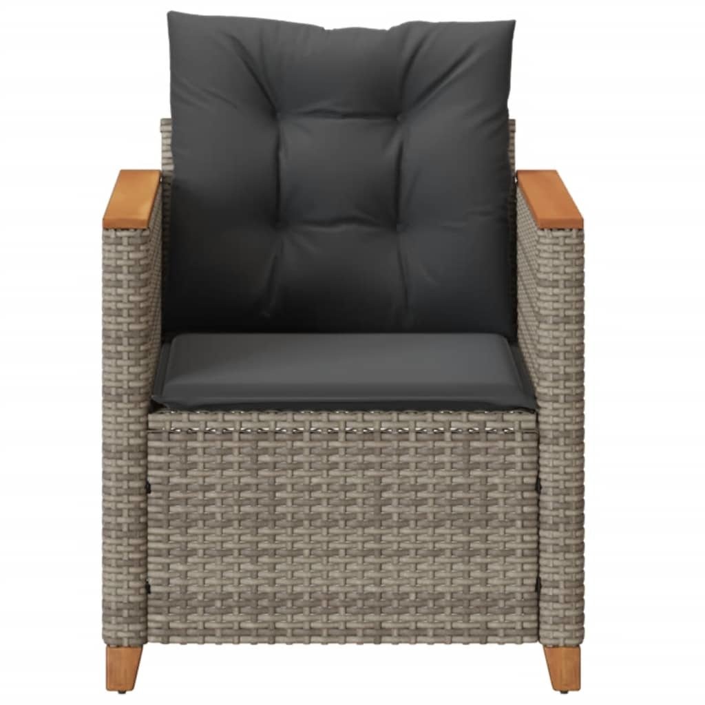 Material: PE rattan, powder-coated steel, solid acacia wood with a natural finish