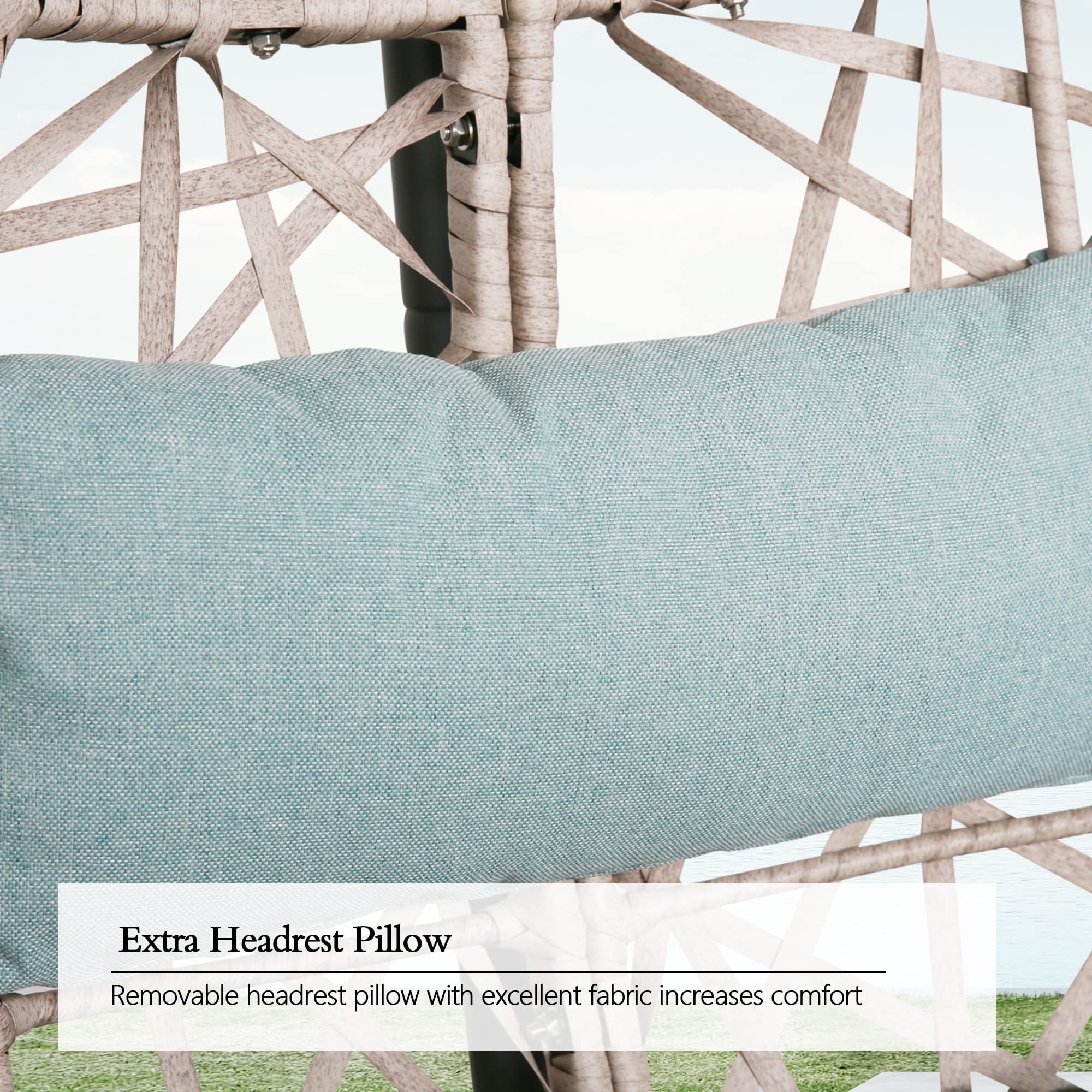 Patio Wicker Swing Egg Chair Basket Rattan Teardrop Hanging Lounge Chair with Stand and Cushions
