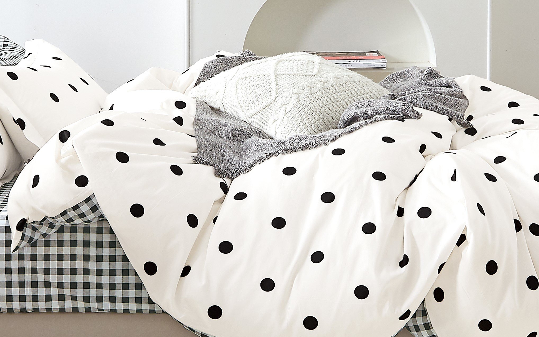 We believe that your bedding should be as fashionable as its functional because its not just for sleeping. Its part of your home decor. Well made with 100% natural cotton fabric. You will love its white and black polka dots all over the comforter. Matching sheet set available for purchase too!