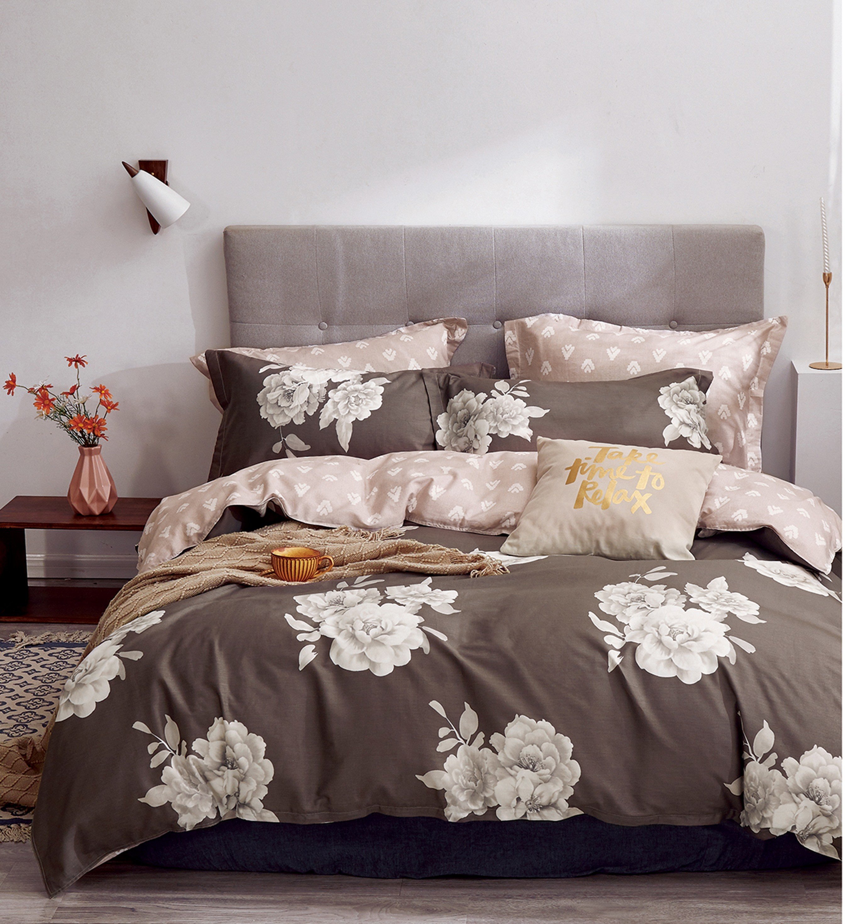 Elegant and homey series Cozy and homey comforter set. Well made with 100% natural cotton printing pattern fabric, It sure gives you peaceful nights' sleep without missing its deor beauty. Pattern: Floral. Color: a combination of white and brown. Material: Shell 100% Cotton. Filling 100% down alternative poly fill 270gsm . Dimensions: King comforter : 106"*90", Queen/Full comforter: 90"*90", Twin Xl comforter: 68"*90". Pillow sham for King:36"*20"+2"flange. Pillow Sham for Queen/Full, Twin XL: 26"*20"+2" flange. Set includes: 1 comforter and 2 Pillow shams, Twin/Twin XL 1 pillow sham. Care instruction: Machine washable, Be sure to follow the wash instruction on sewn label. King/Queen comforter needs to be washed by overload size wash machine.