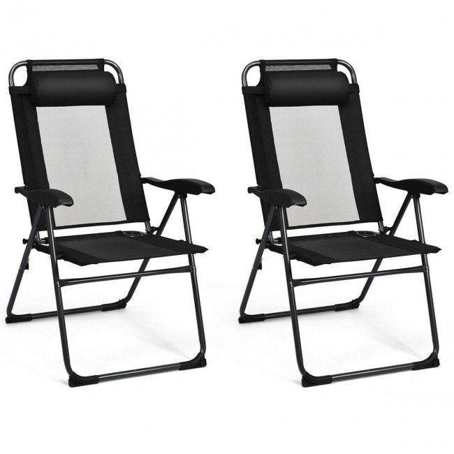 2 Pieces Patio Adjustable Folding Recliner Chairs with 7 Level Adjustable Backrest