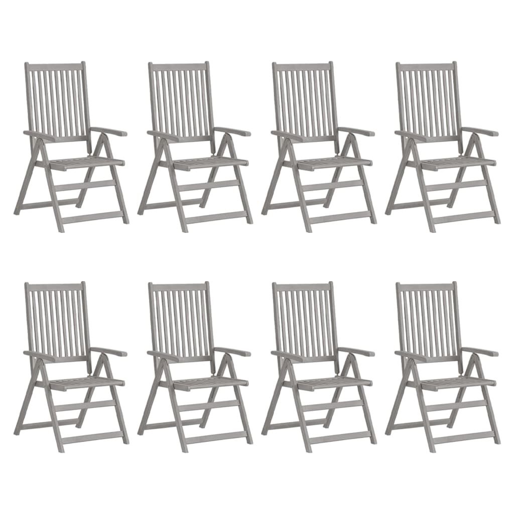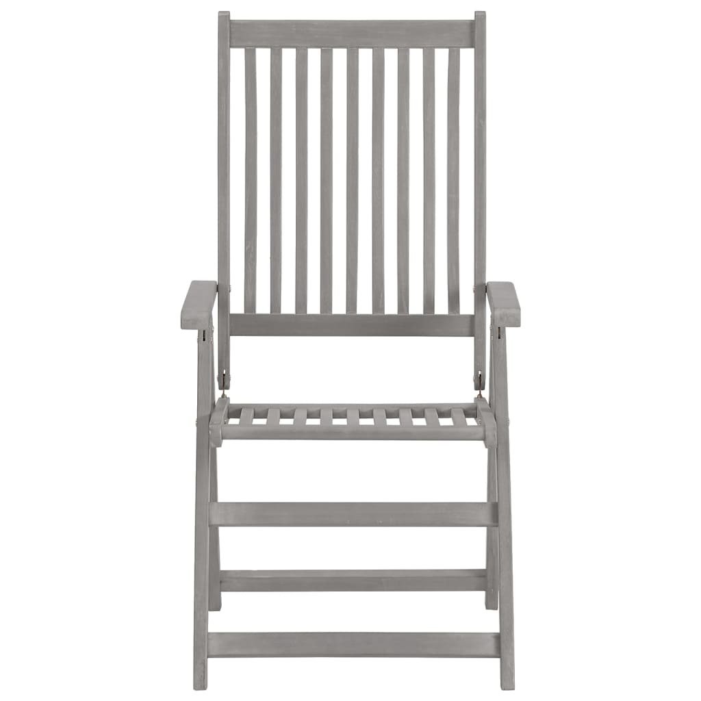 These armchairs are made of solid acacia wood with a gray wash finish, a hardwood with dense grains. These beautifully-designed outdoor chairs are stable, durable and eye-catching. The chair's backrest can be adjusted in 5 reclining settings, so you can always set the most comfortable position as per your preference. These chairs are perfect for dining with your family, or just enjoying the weather in your garden.