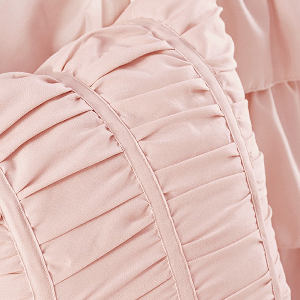 Comforter/Sham: 100% polyester solid 85gsm microfiber, with flowing ruffles, solid microfiber reverse, 200gram polyester fillingPillow: Brushed microfiber cover and polyester filling