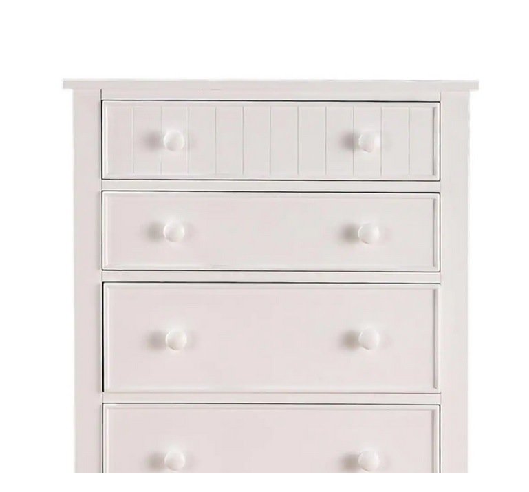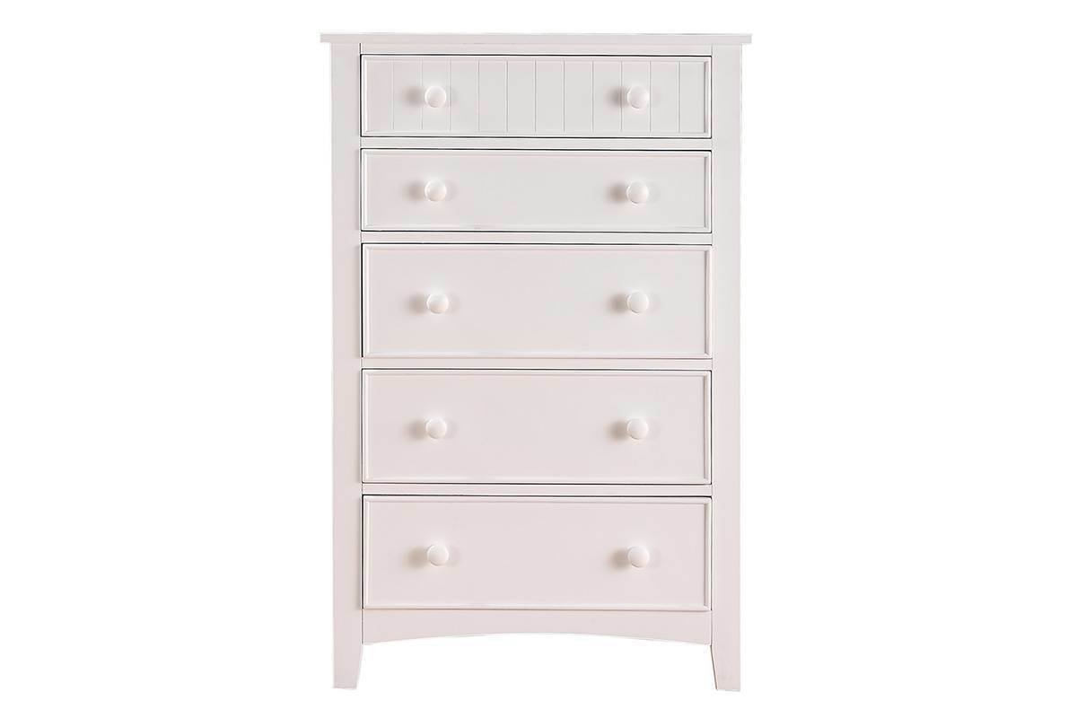 Enjoy the contemporary look of minimal trend using this white accent chest. Combining the smooth and delicate aesthetic of particle board, medium density fiber wood with the modern reflections of 5-drawers, this chest is a great addition for a clean, contemporary setting. Ultimate for bedroom purpose.