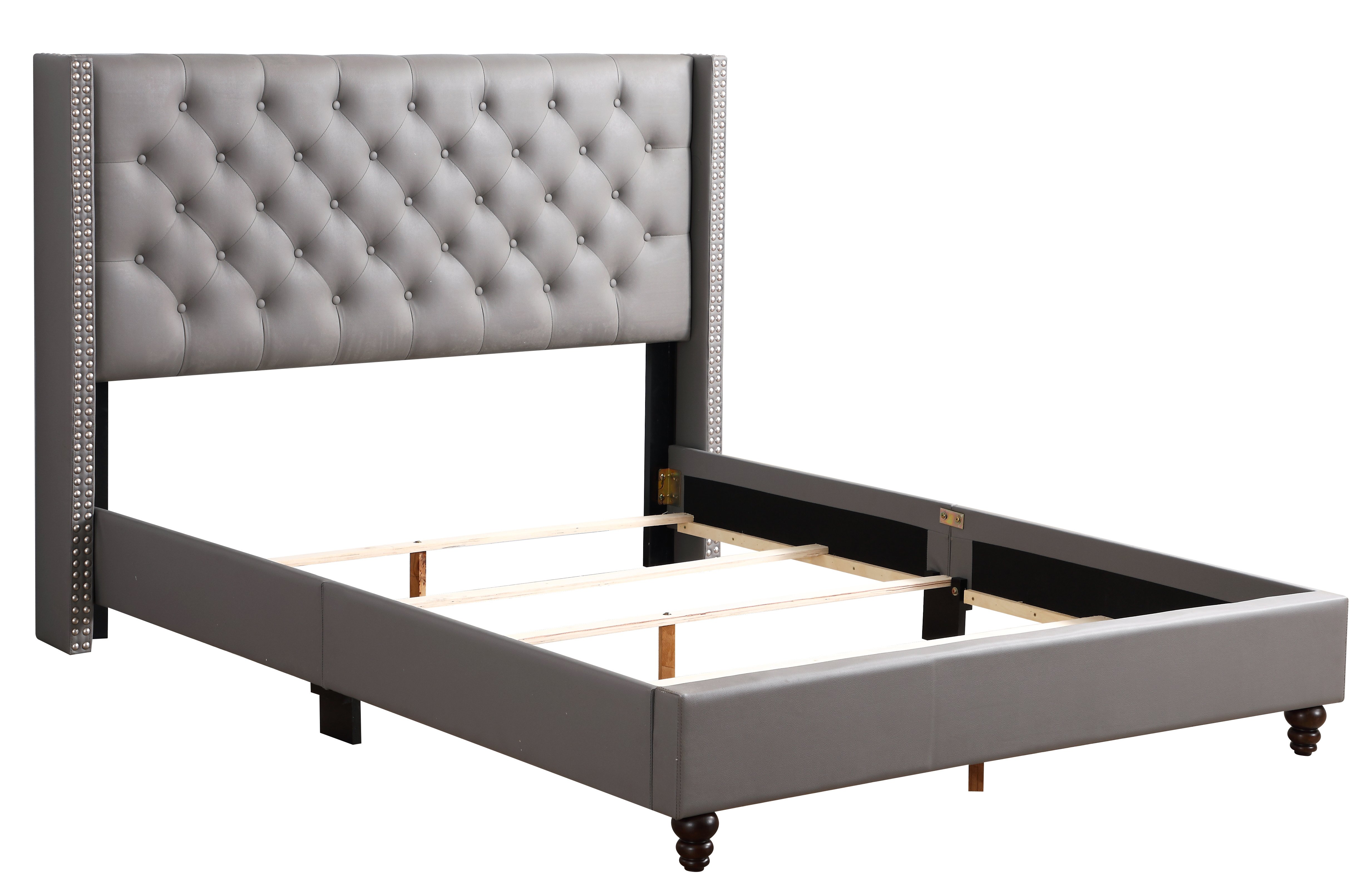 Upholstered bed Featuring Deep Tufting and Nailhead Trim