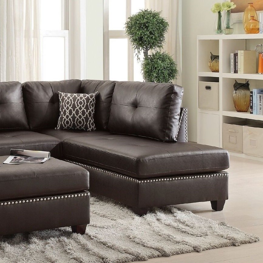 Create a modern, chic lounging space with the reversible sectional. Beautiful bonded leather or linen-like fabric linen-like fabric gives your home a breath of fresh air at a great value. Invite your friends and family to relax on oversized cushions, which are reinforced with a durable seat support system. Plus, a matching ottoman come together with this sectional.