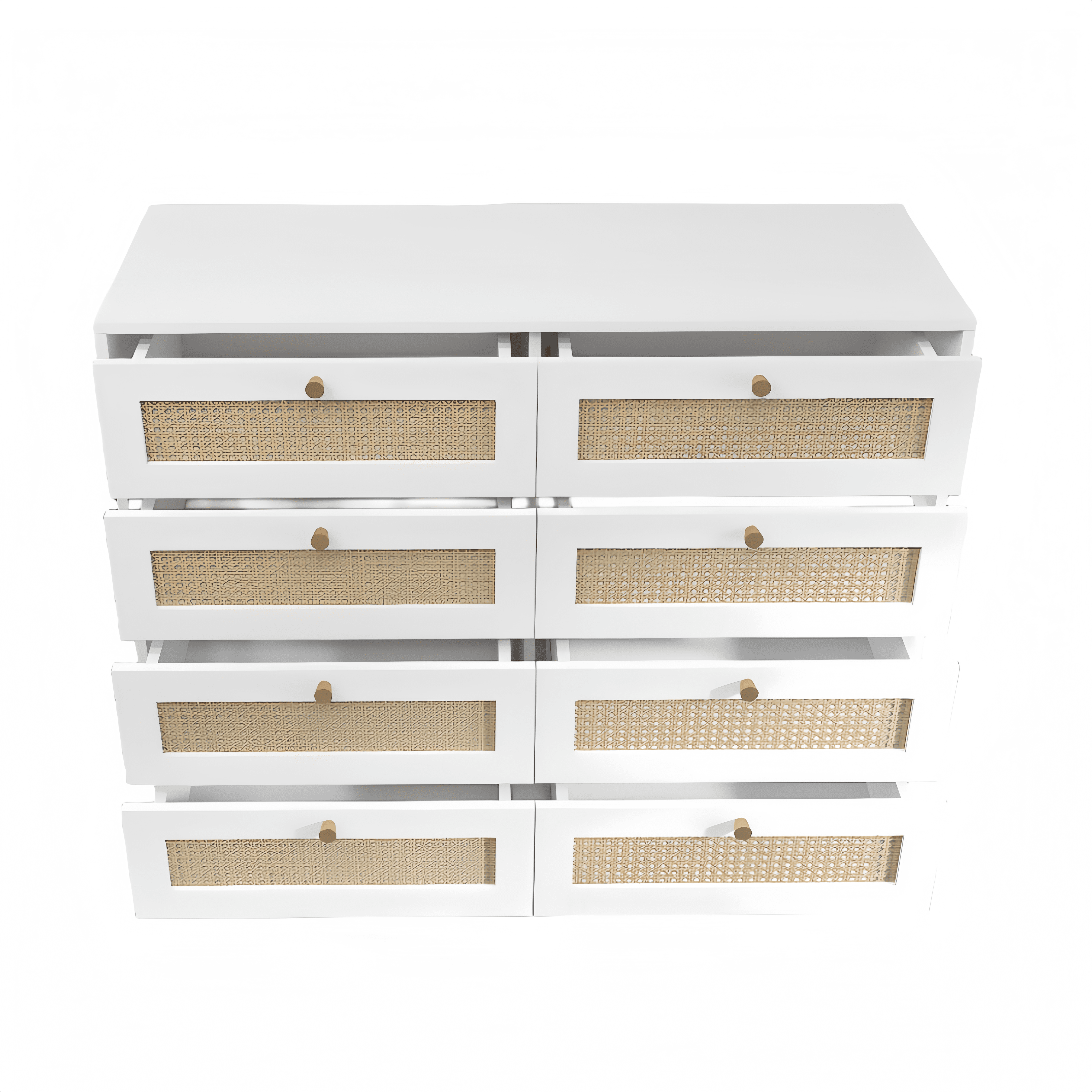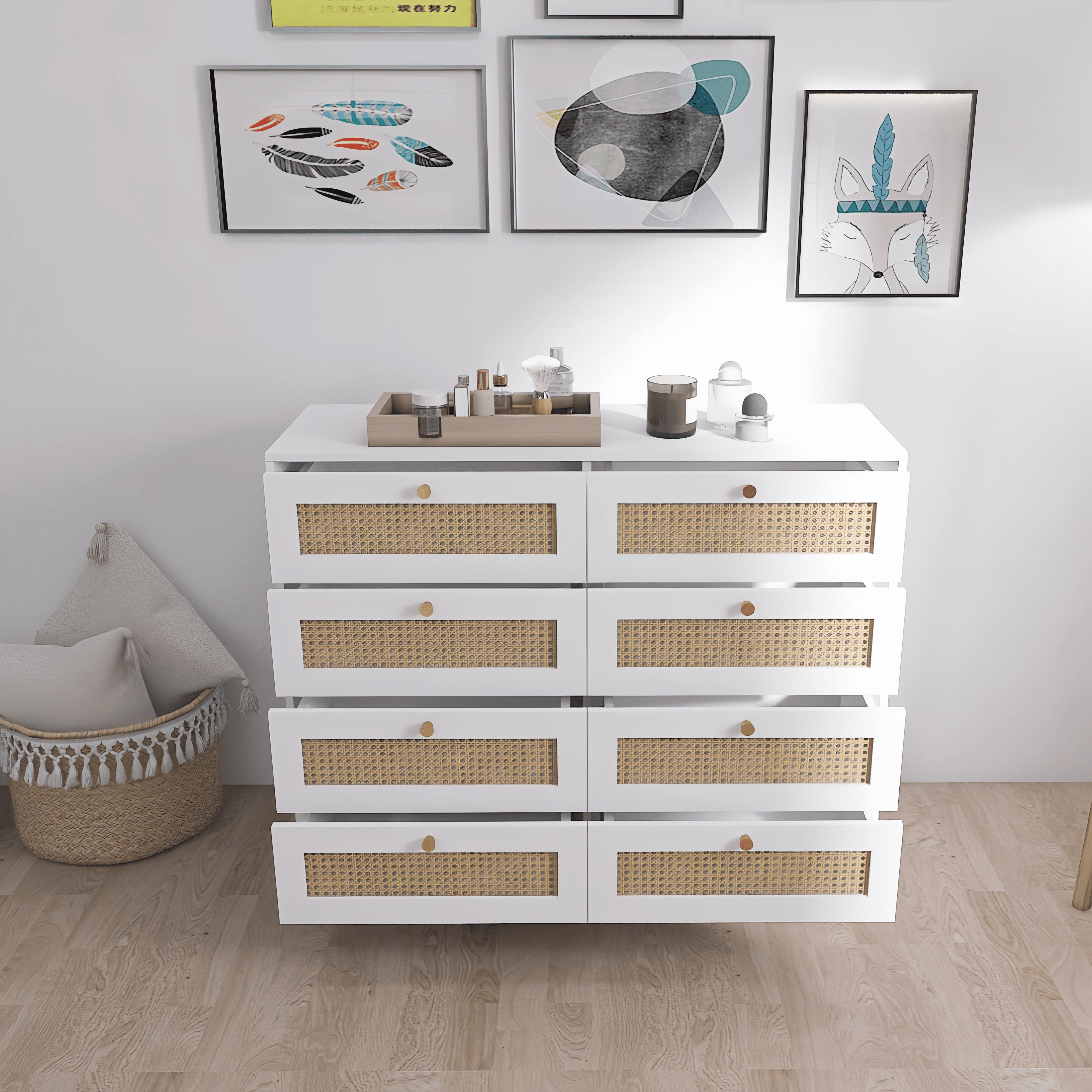 Style Home: Equipped with woven rattan, while angled legs and golden handles, the drawer dresser will add a mid-century charming to your home. Use on its own or pair it with other rattan matching pieces from your home