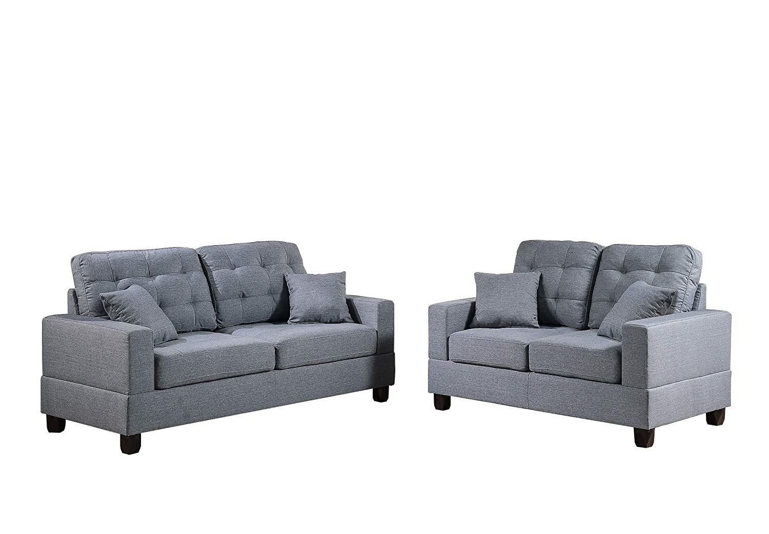 Believe in the possibilities of boldness with this 2-piece sofa set that includes a loveseat and a 2-seat sofa. Plush cushion, accent tufting and light stitching define this amazing seating space great for the modernly designed home. Available in faux leather black, beige and espresso, and grey (linen-like fabric).