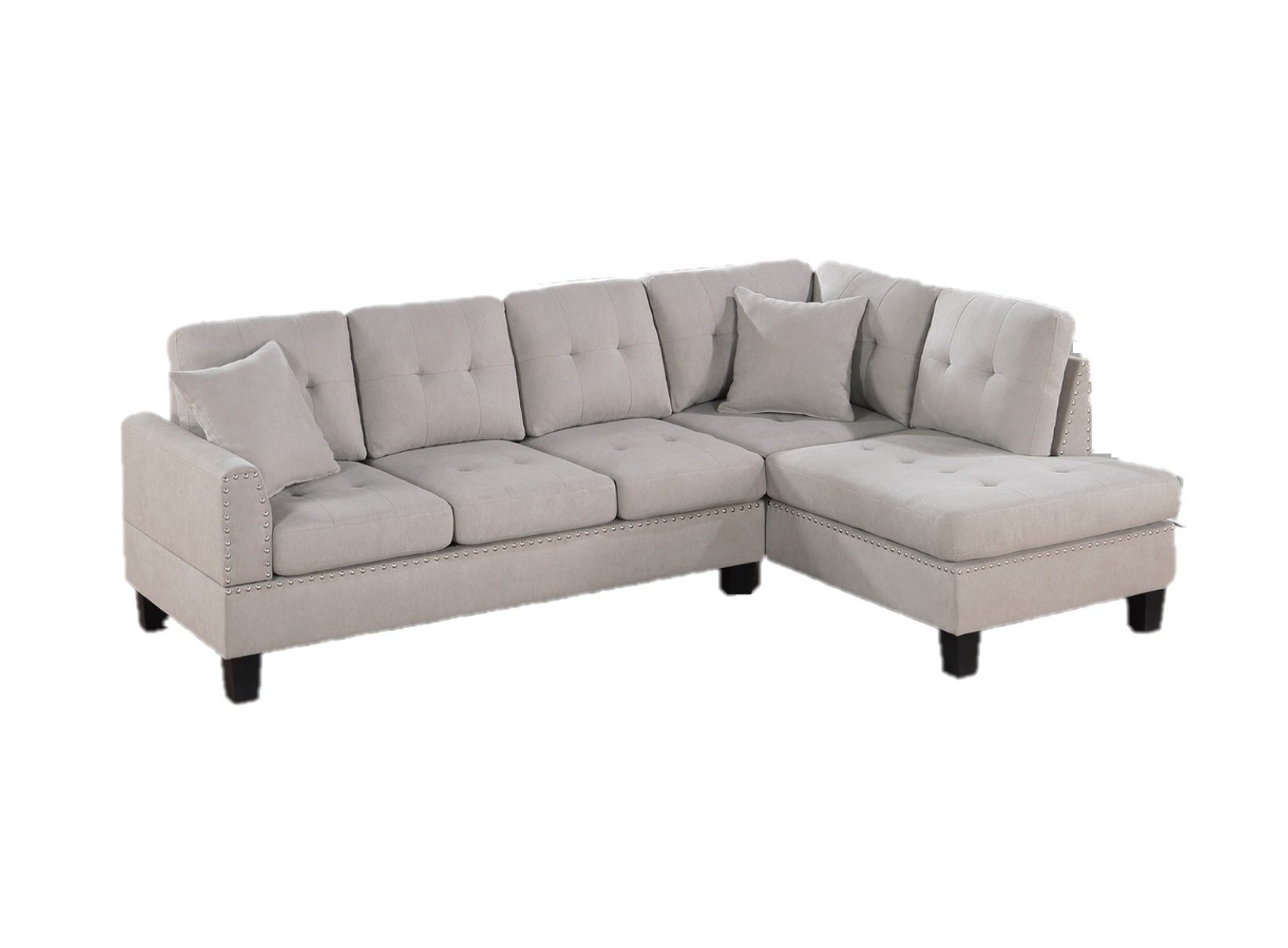 Description :-The perfect centerpiece for your living room, featuring a timeless design, sensible size, and top-of-the-line comfort sectional. This sectional is everything you'd ever want in your living space, with durable soft upholstery, plush back cushions, and medium-firm seat cushions.Product Dimensions :-LAF Sofa :- 66" x 33" x 35"HRAF Chaise :- 66" x 33" x 35"HOverall Sectional : 99" x 66" x 35"HListing Includes :- 2pc Sectional Sofa Set (LAF Sofa And RAF Chaise) Only.Assembly : Simple Assembly Required.Features:-•Modern / Contemporary•Mushroom Color•Tweeted-Like Velvet•RAF Chaise And LAF Sofa•Pillows Included•Nailhead Trim•Tufted Cushion Couch