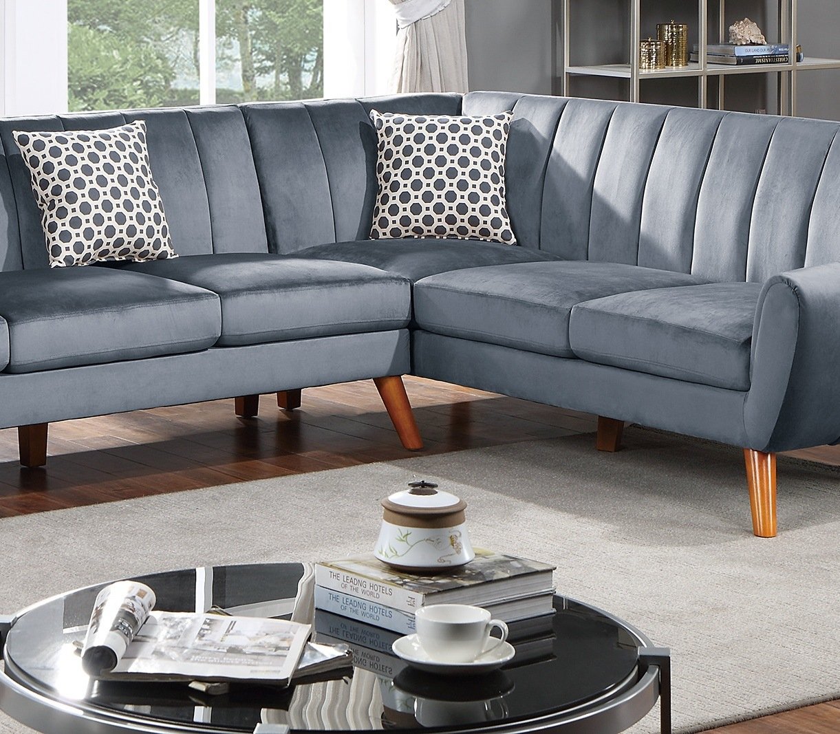 Description :-Crafted with the taste of mid-century in mind, this 2-piece sectional offers a dramatic presence that will make you the talk of the town. Its smooth velvet upholstered frame features a chic design of bold vertical lines covering the back support and curved armrest with splayed wooden legs. With spacious seating provided by plush cushions, this exquisite piece of furniture is perfect for any looking to create a timeless moment in their living space. Available in Dark Gray, Light Brown, and Light Gray.Product Dimensions :-Left-facing Sofa: 76" x 35" x 33"HRight Facing Loveseat Wedge: 35" x 85" x 33"HOverall Sectional : 111" x 85" x 33"HListing Includes :- 2pcs Sectional Sofa w/ 2 Pillows (Left Facing Sofa And Right Facing Loveseat Wedge) Only. Only.Assembly : Simple Assembly Required.Features:-•Modern / Contemporary•Dark Gray Color•Velvet Fabric•Pillows Included•Unique Seat•Vertical Lines Tufted Cushion Couch