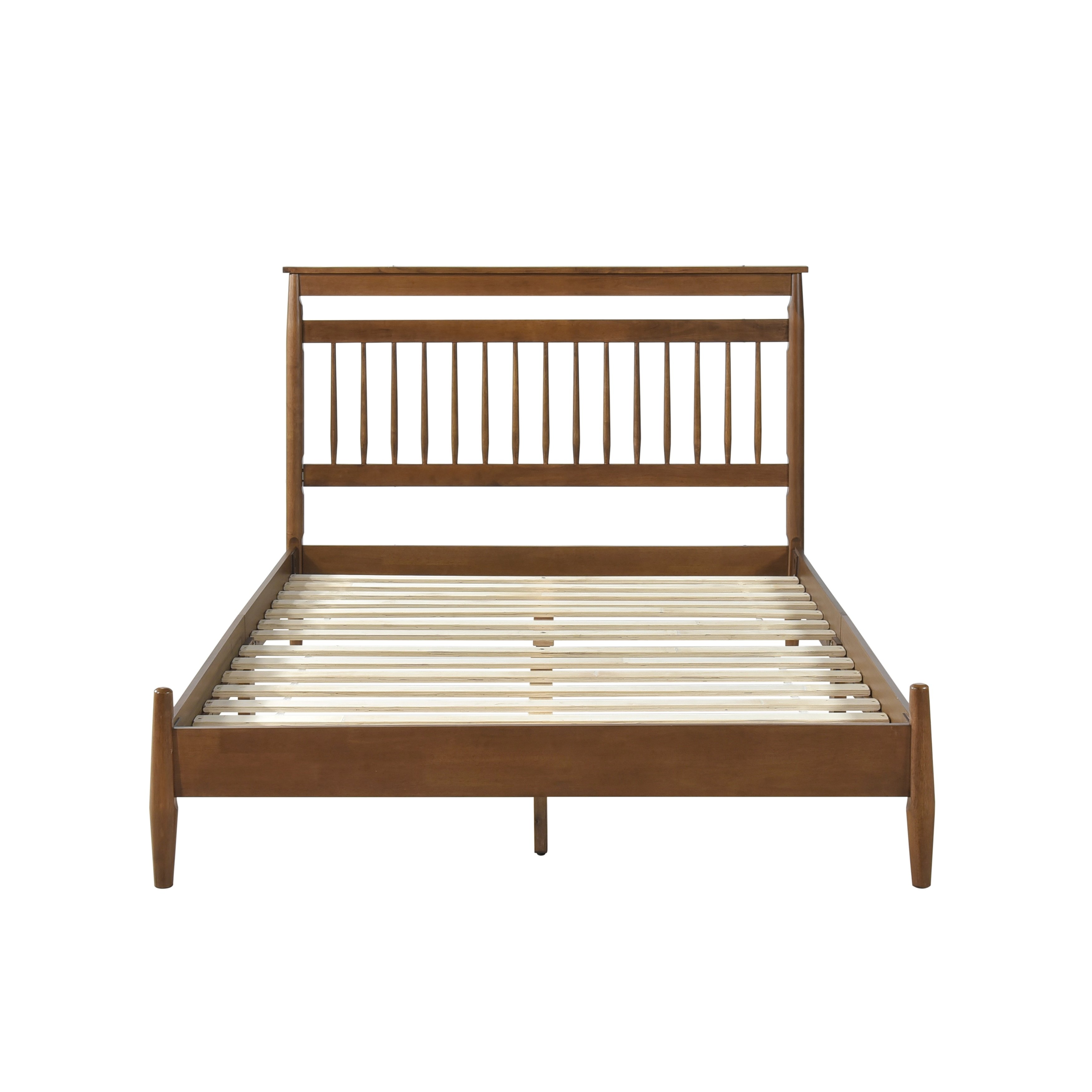 The transitional design of the Arlo Collection allows for perfect placement to meet the sleep space needs of your home. The queen bed arrives in a single box, conveniently packaged to include the headboard, footboard, rails, and slats. The wood frame bed is finished in a chestnut hue, its classic shade a versatile decorative addition to your space. The subtle nod to Arts & Crafts style furthers its timeless look.PRODUCT DIMENSIONS: Overall Dimension: 64" x 84.5" x 47"HHeadboard width: 63.5"Headboard height: 47"Footboard width: 64"Footboard height: 17"Rail to floor: 7.5"Listing Includes: One Queen Size Platform Bed Only.Mattress: Not included.Assembly Require.