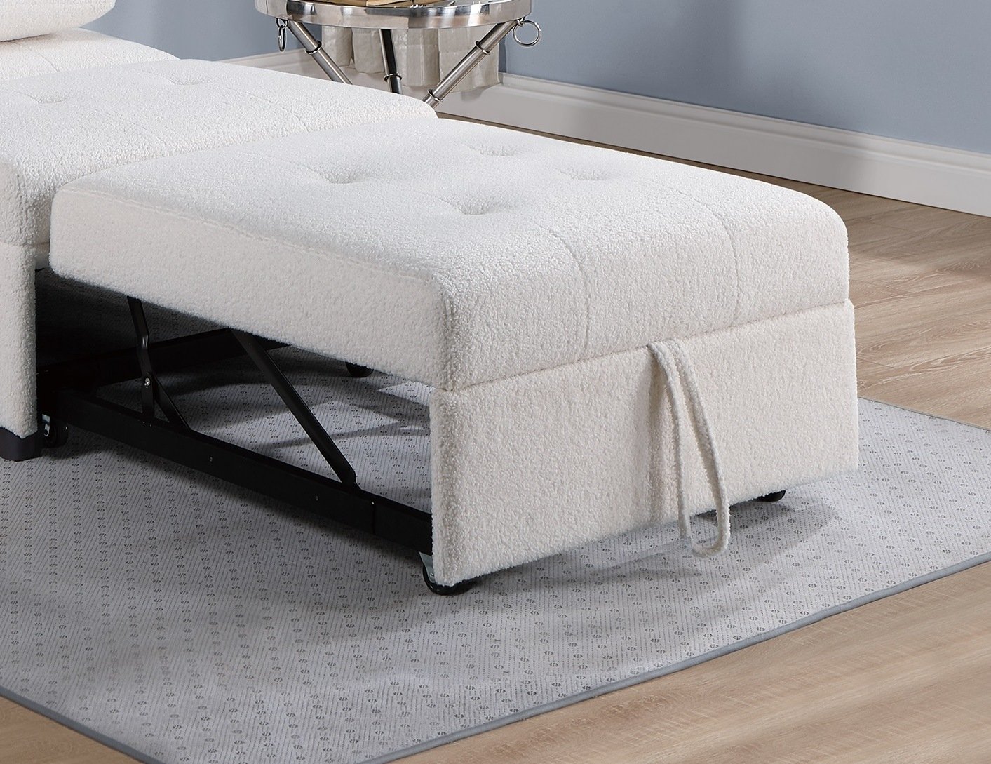 Crafted with precision and adorned with premium features, this sofa chair is more than just a piece of furniture; it's a lifestyle upgrade. The Sleek Armless Design offers a clean and streamlined look that effortlessly complements any room. Unleash the hidden potential of your sofa chair with the pull-out bed feature. Simply extend with the convenient pulling handle, transforming your seating into a spacious and comfortable bed in seconds. Experience the cozy warmth and plush feel that Sherpa brings, creating an inviting ambiance for you and your guests. The small accent pillow, adds an extra layer of style and comfort to your lounging experience.