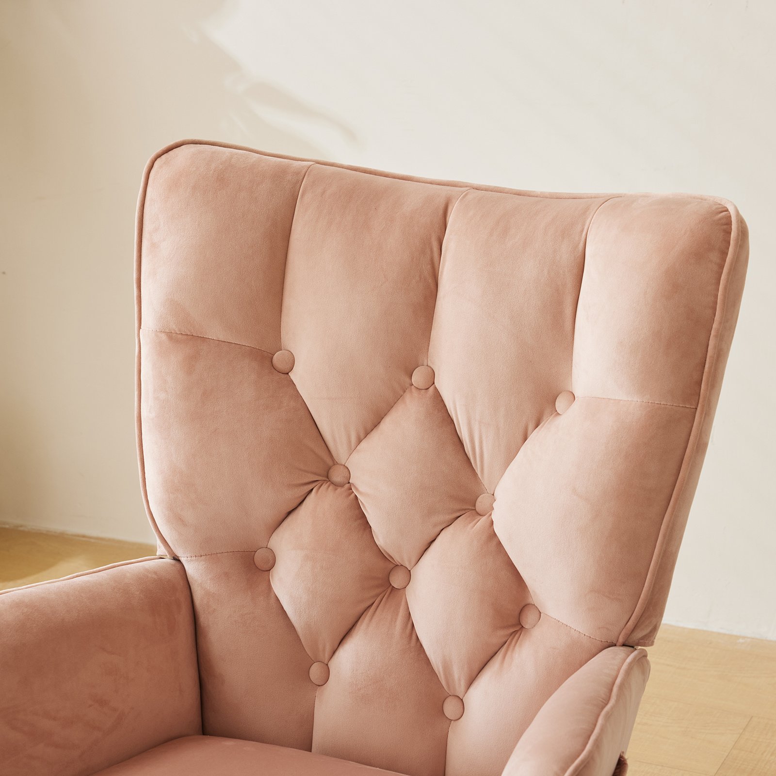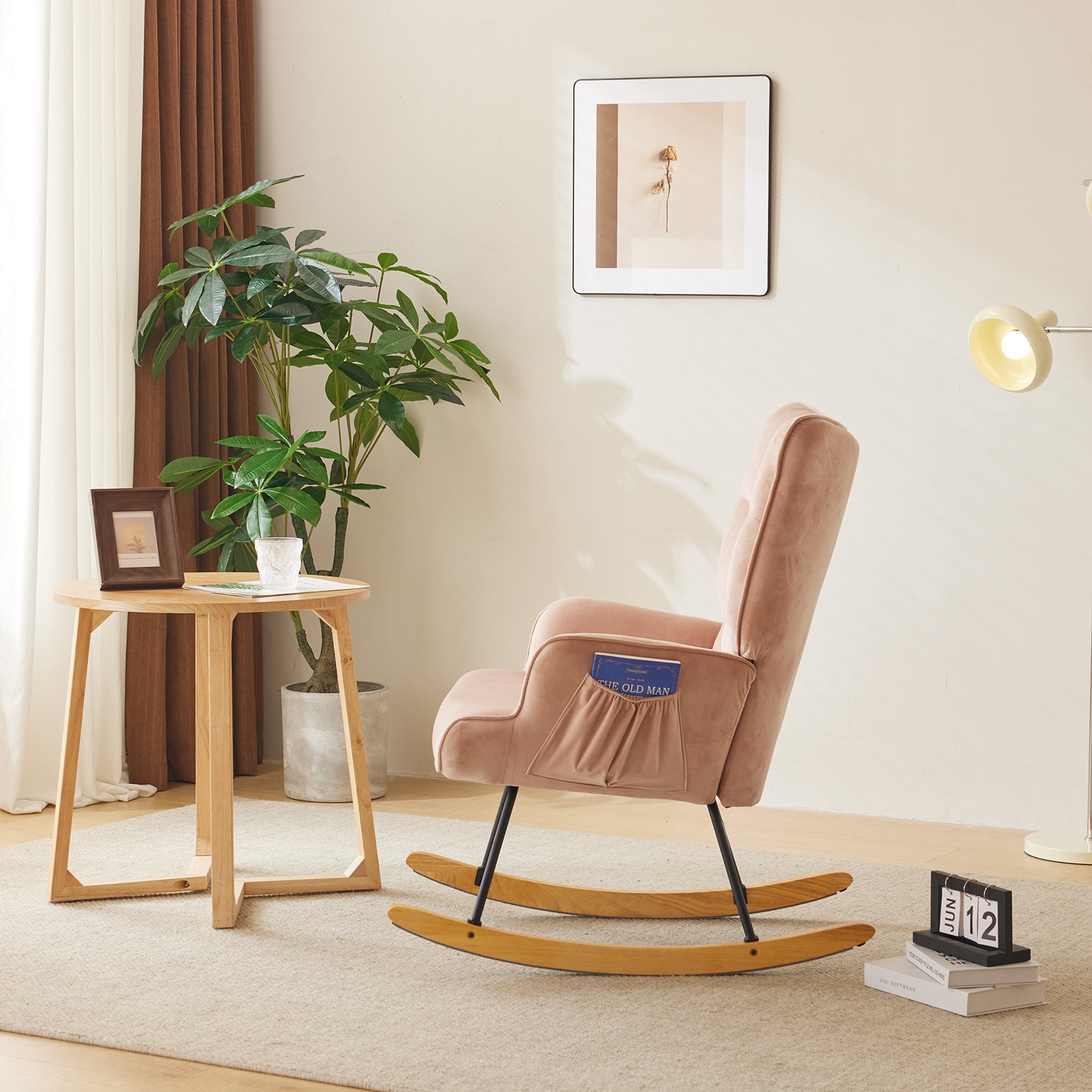 4. Thoughtful Details: The glider features handy side pockets for essentials, anti-slip stoppers for unwavering stability, a thickly padded seat for peak comfort, and a tufted high backrest that marries style with comfort.