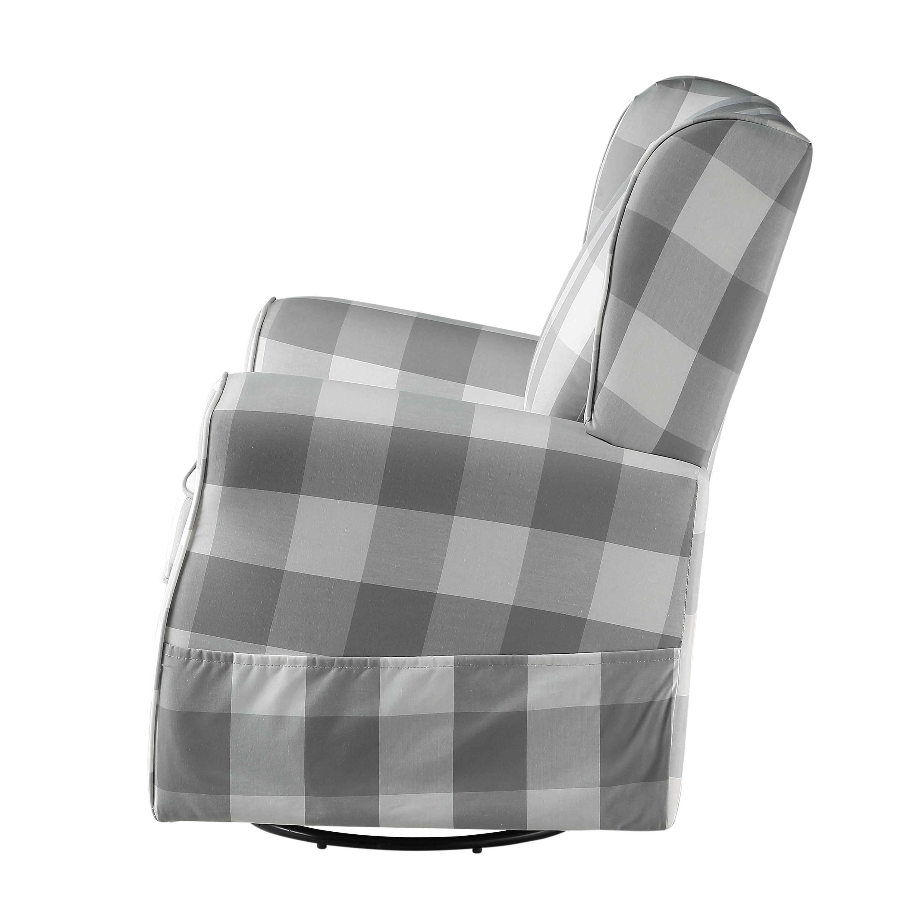 Combining comfort, functionality, and traditional style, this swivel accent chair features a wingback design that exudes elegance and sophistication. Its checkerboard plaid pattern adds visual interest and complements the traditional aesthetic, while the gliding motion provides a soothing and relaxing experience; removable cushion covers offer practicality and easy maintenance.