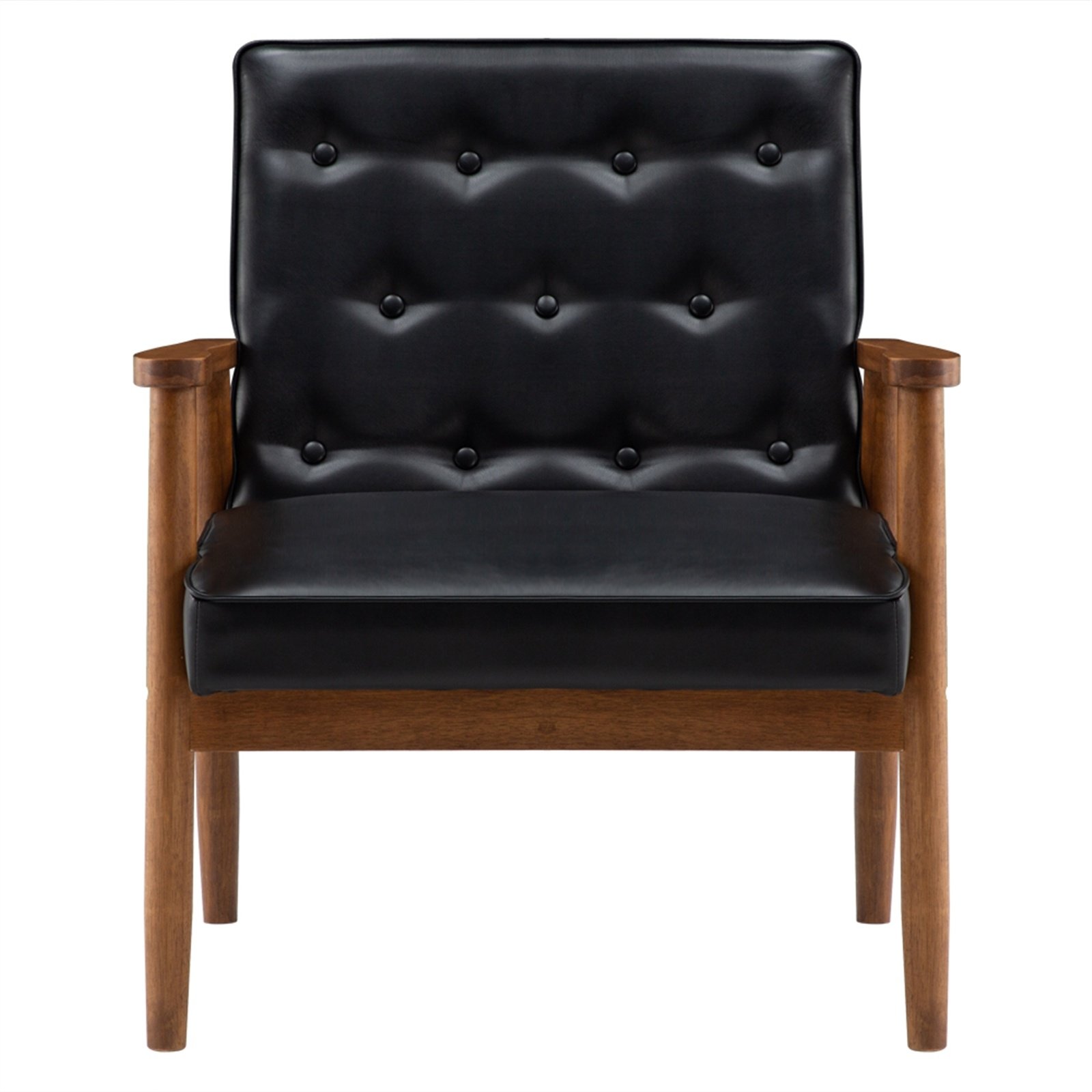 [Appearance]Modern and simple design sofa; button tufted; rubber wood solid wood frame; walnut color handrail