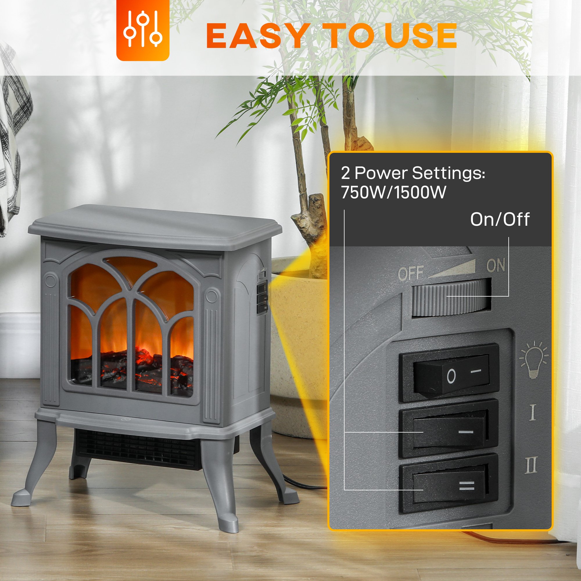 Turn Up The Heat: Fortunately, all our stove fireplaces work independent of the heat, and can be adjusted to 750- or 1500-watts. You can turn on the electric fireplace on the hottest day of the year or keep the heat off on the coldest day of the year (but why would you want to?).