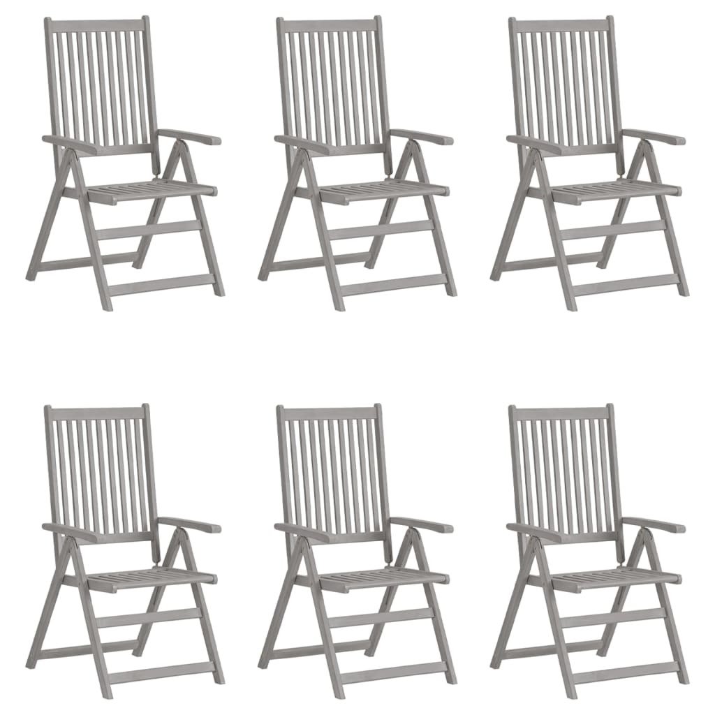 These armchairs are made of solid acacia wood with a gray wash finish, a hardwood with dense grains. These beautifully-designed outdoor chairs are stable, durable and eye-catching. The chair's backrest can be adjusted in 5 reclining settings, so you can always set the most comfortable position as per your preference. These chairs are perfect for dining with your family, or just enjoying the weather in your garden.