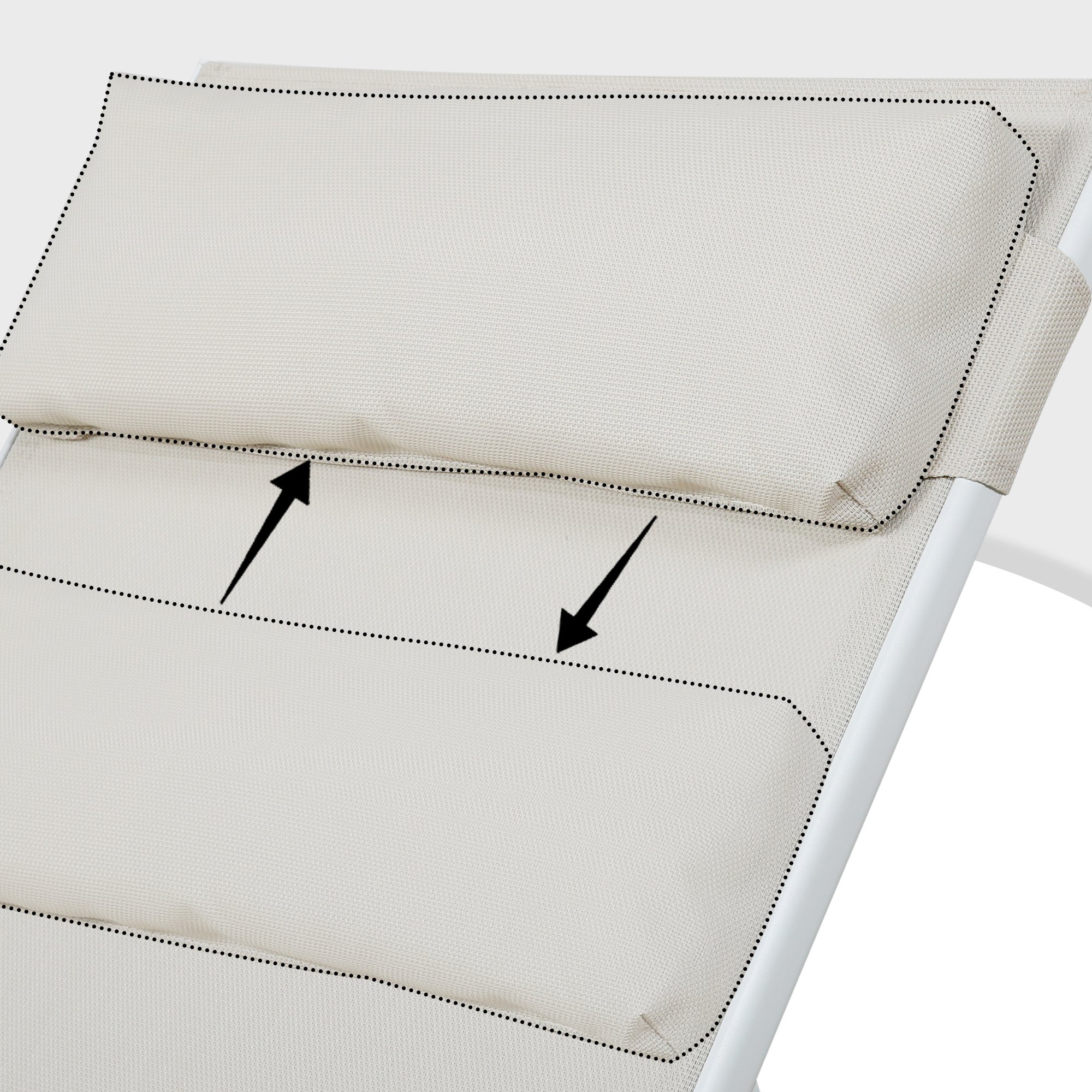 This adjustable chaise lounge will give your outdoor living space an upgrade. Weather-resistant material will provide many seasons of enjoyment; while the sturdy steel frame and breathable sling will fit with many styles you select for your outdoor furniture. Designed with four adjustable positions; allowing you to choose comfortable angle to recline. Featuring with removable padded headrest; adding additional comforts. Whether placed on your patio; porch; or sunroom; this chaise lounge will add a touch of elegance to your space. Enjoy the comfortable and slow life; and make the best of it.
