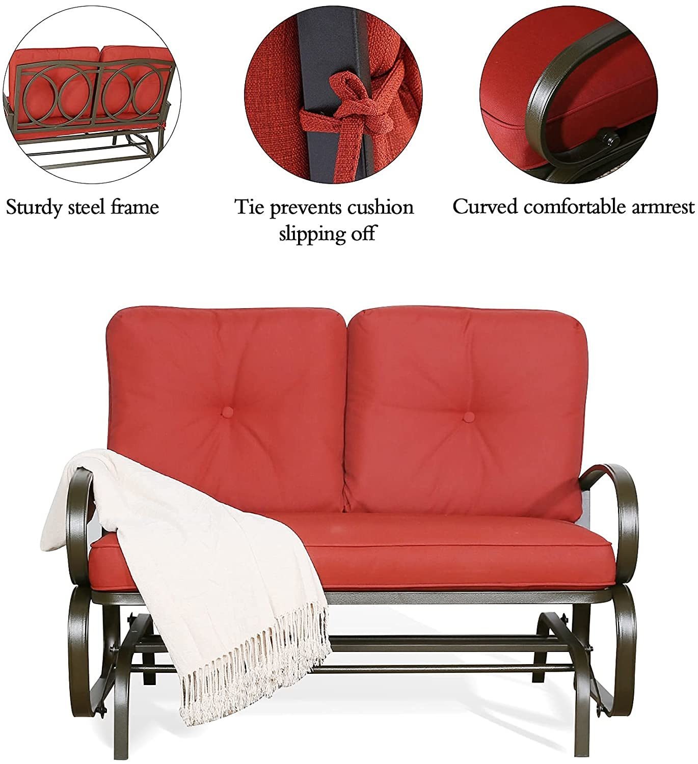 Loveseat has a simple and elegant design. As a two-seater; it is the perfect size to sit 2 adults comfortably; the simple classic style is lovely and does not cost extra room. They bring you the most comfortable and pratical use experience. Back and seat cushions provide more comfort. Cushions also available with 100% Olefin fabric. Olefin is an economical alternative to solution dyed acrylics. This fabric is durable long lasting and specifically designed for outdoor use offering 1500 hours sun exposure and UV protection.