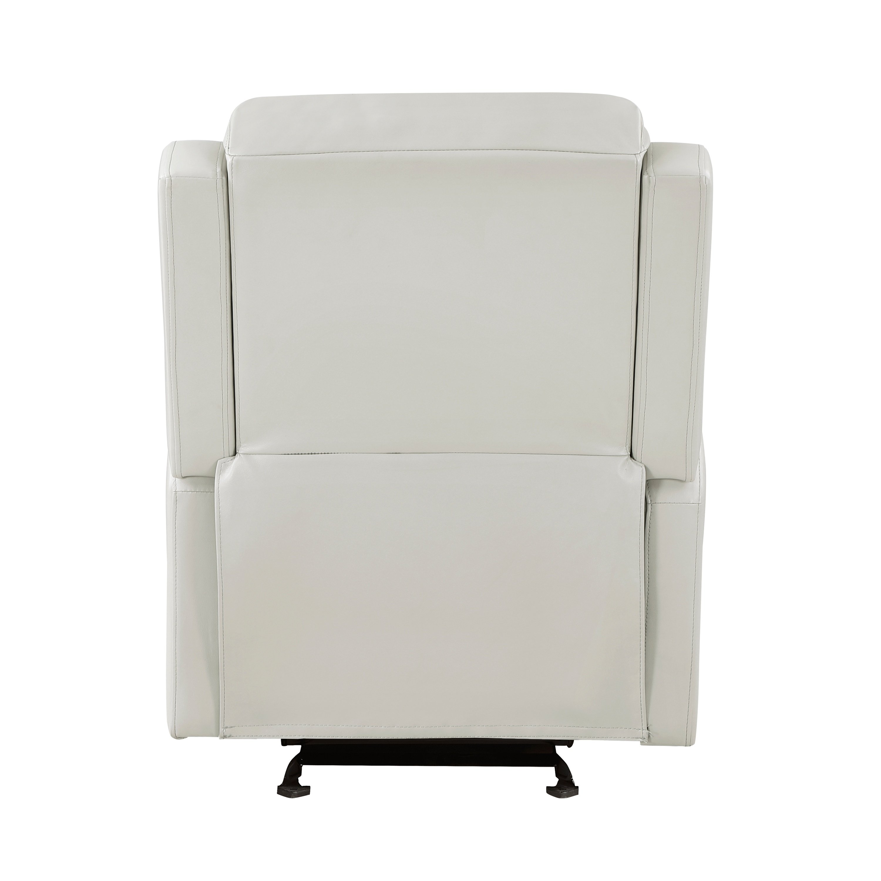 Whether used as a stand-alone piece or as a complement to your existing living room seating, the Durant Collection provides a welcoming seat to your home's décor. The streamlined profile of the glider reclining chair is covered in taupe faux leather. The reclining mechanism is engaged with a pull to the side mounted tab, elevating the footrest and lowering the seatback, while the gentle gliding mechanism provides smooth motion to your seated experience.PRODUCT DIMENSIONS: Overall Dimension: 30" x 39" x 41"HSeat Width: 22"Seat Depth: 22"Seat Height: 19"Arm height: 25"Fully reclined length: 64.5"Fully reclined height: 33"Doorway width: 24.5"Required back clearance to recline: 10.5"Listing Includes: One Glider Reclining Chair Only.Simple Assembly Require.