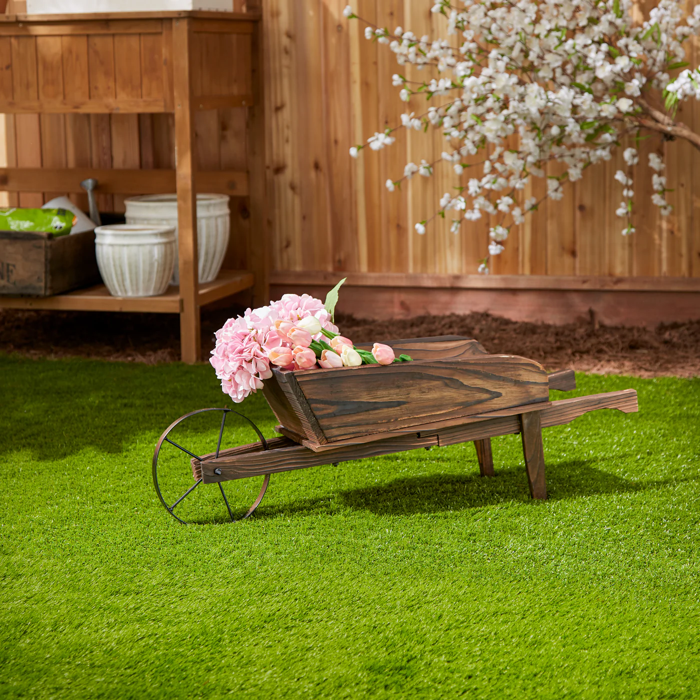 Capture the charm of a farmer's country market with this winsome miniature flower cart! Just arrange your greenery or colorful decorative accents inside and instantly add a wagon load of blooming color to your yard.