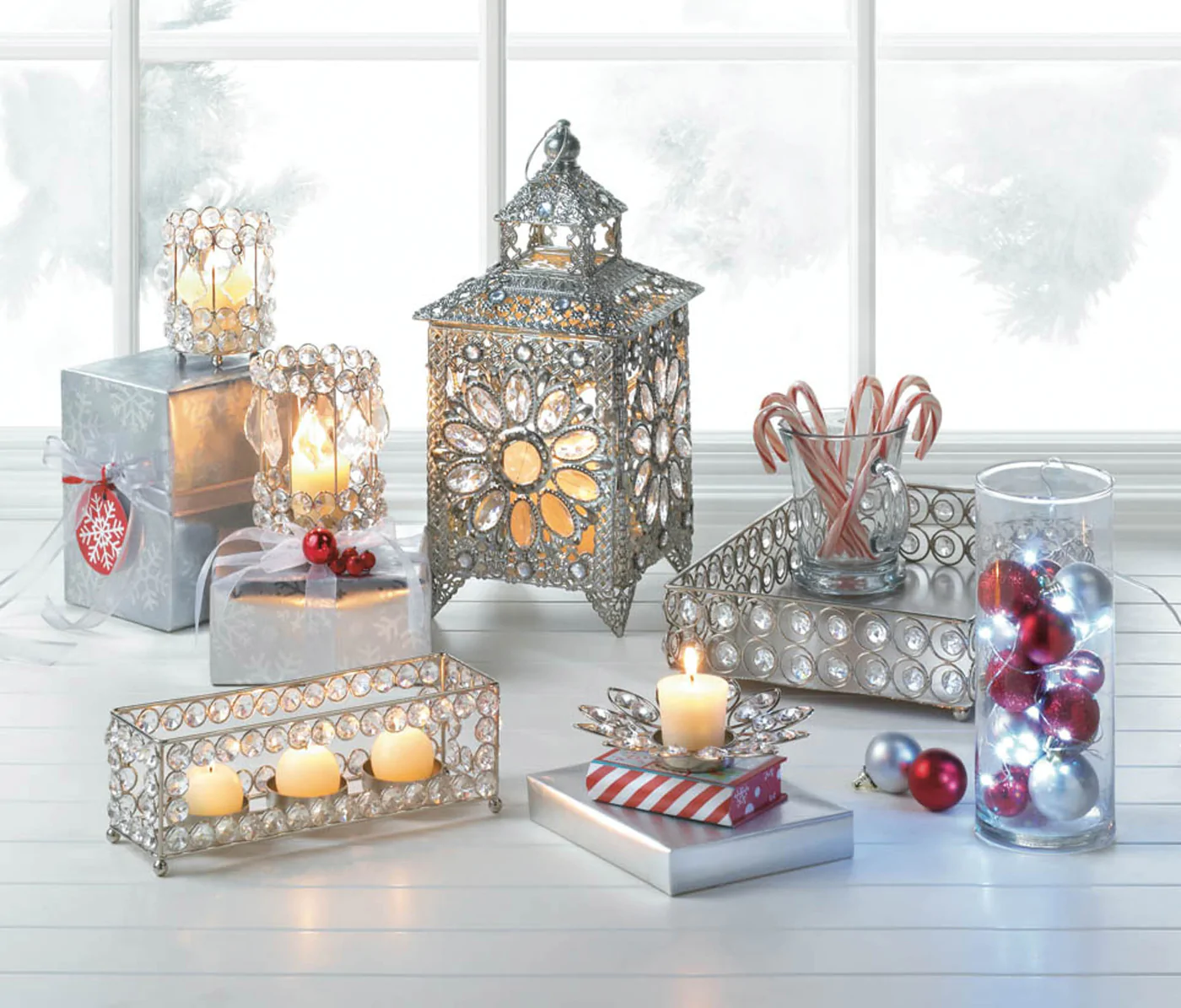 Live like royalty! Enjoy the sparkle of all the riches in the kingdom that are gathered in this stunning tabletop candle lantern. Faceted jewels set inside luxurious silver-tone filigree dazzle when a candle of your choice is lit inside. There's nothing common about this enchanting treasure!