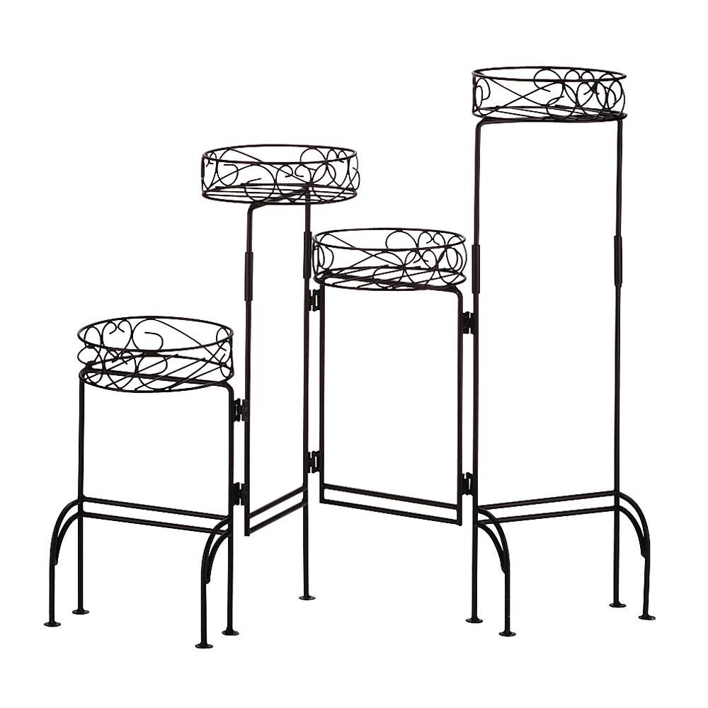Form meets function in this versatile design! This unique screen has four graduated-height panels, each topped with a secure plant shelf; foldable to fit any area. Maximum weight: 80 lbs, 20 lbs per basket.