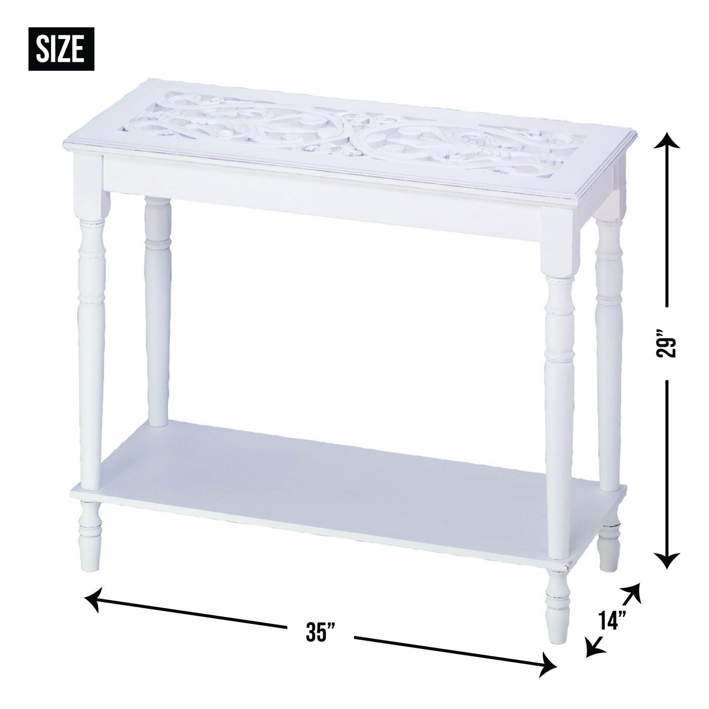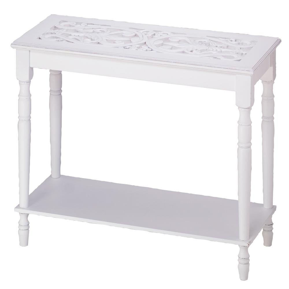 Turned legs and an intricately carved top add rich visual appeal to this enchanting white wood table. Functional and stunning home décor that will look amazing anywhere you display it!