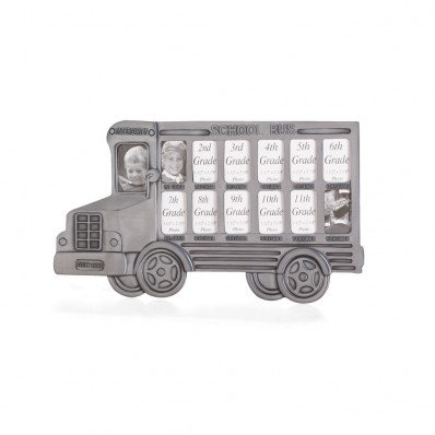 This pewter-finish school bus has enough windows to frame all of your child's wallet-sized class photos from grades K–12. A charming way to remember all their school days and features an easel back for easy display.