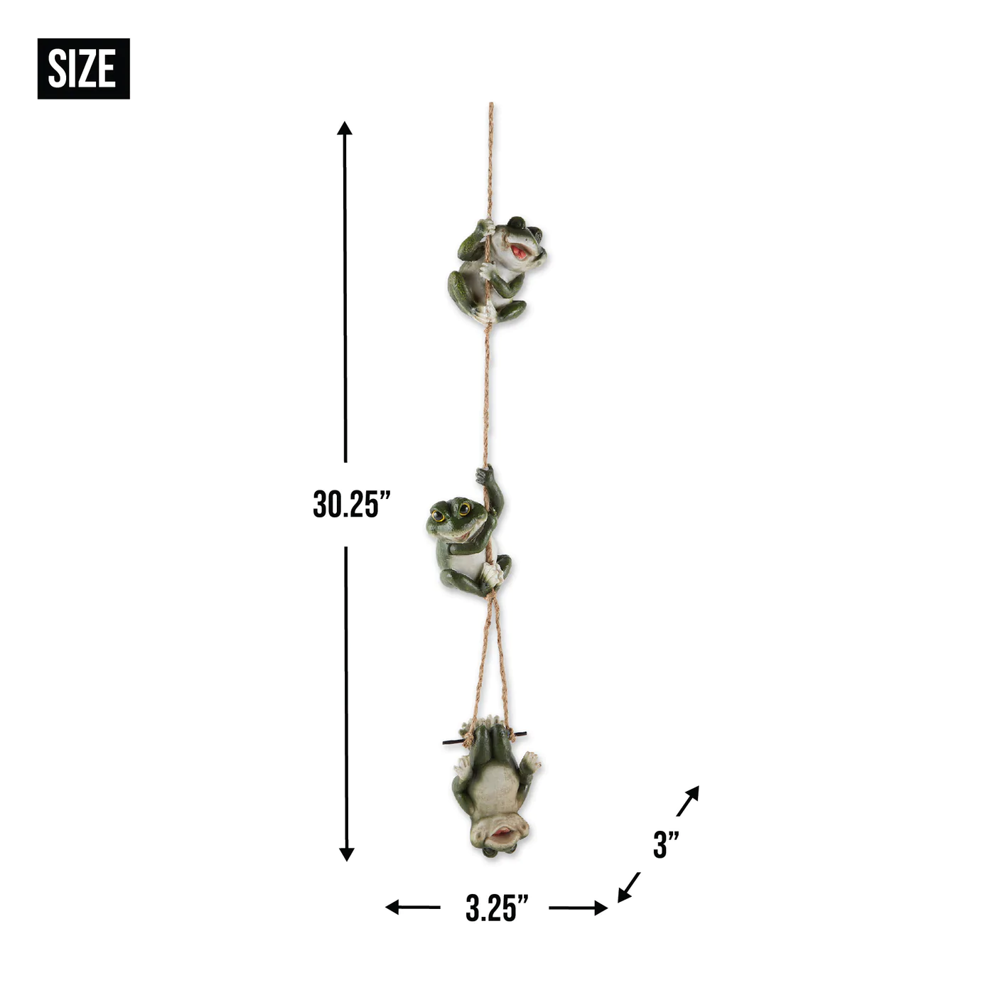 A giggling trio of amphibious acrobats enjoys a merry moment of mirth, playfully tumbling down the length of a free-swinging rope. An utterly irresistible hanging sculpture that brings loads of love and laughter to your garden!