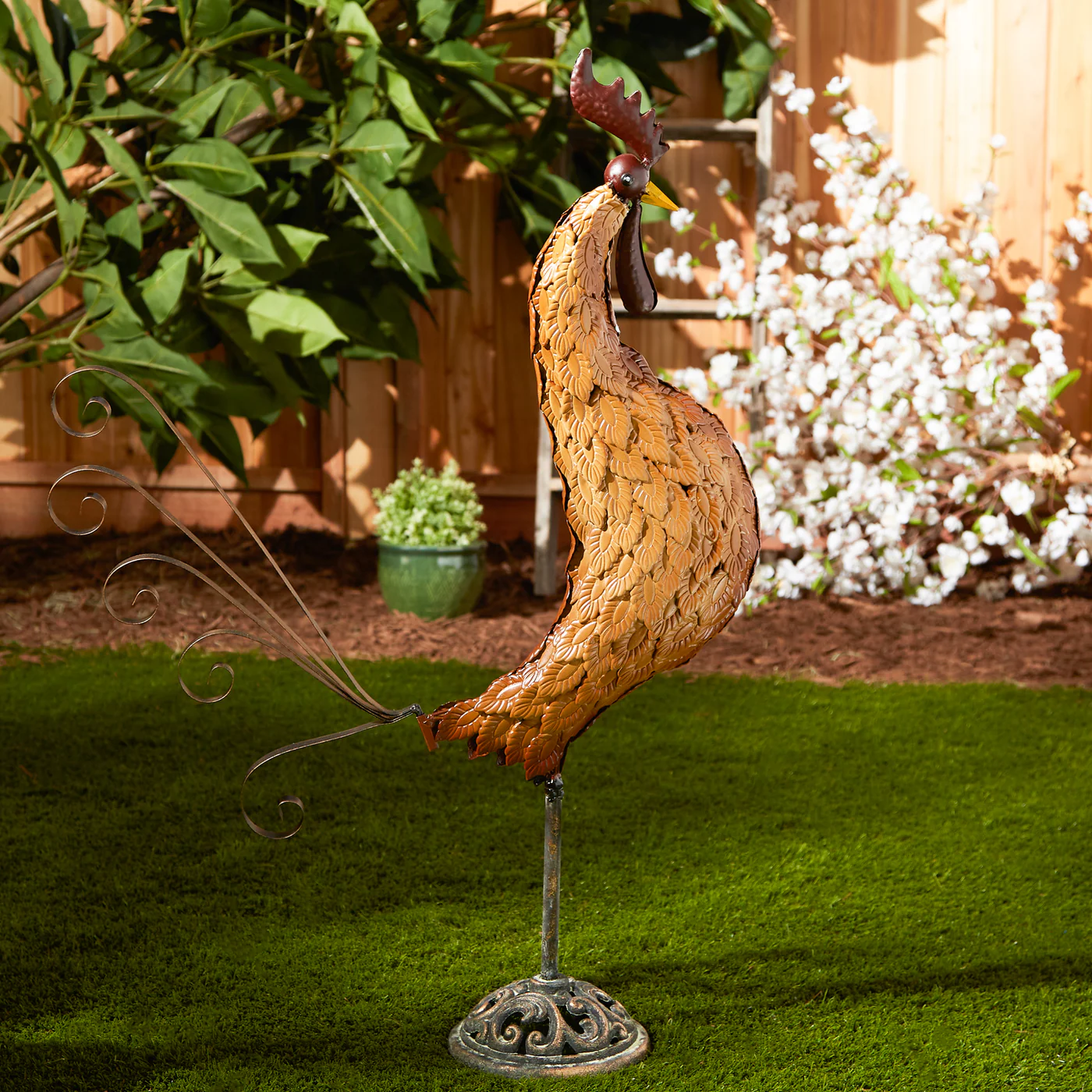 Whether your décor is wine-country Tuscan or down-home farmyard country-cute, this impressive wrought-iron rooster adds just the right touch of color and sophistication! A substantial 31 inches tall with filigree base and graceful tail; dozens of embossed-metal feathers give this handsome sculpture the look of an artistic antique handicraft.