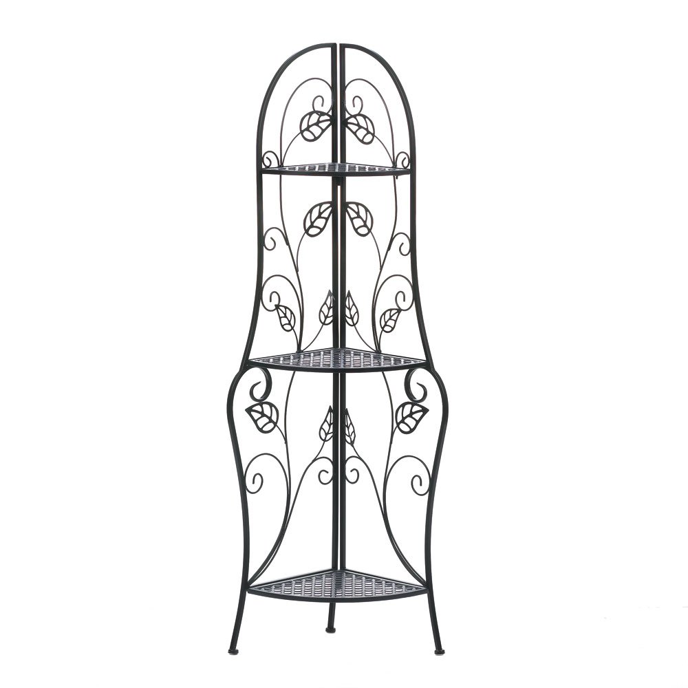 A sweet treat for any room, this corner baker shelf will display your plants, collectibles and more while enhancing your room with its pretty design. Trellis-inspired shelves climb up the curling metal frame that's decorated with lovely leaves.