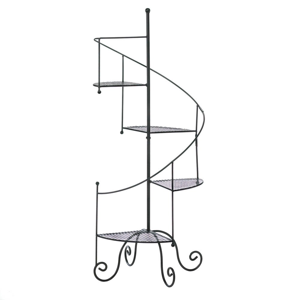 Give four of your favorite plants a supremely stylish showcase! This metal plant stand features four mesh platforms, a curved 'banister' and four scrolling feet below. Standing at more than three feet tall, it's a grand way to exhibit your green thumb.
