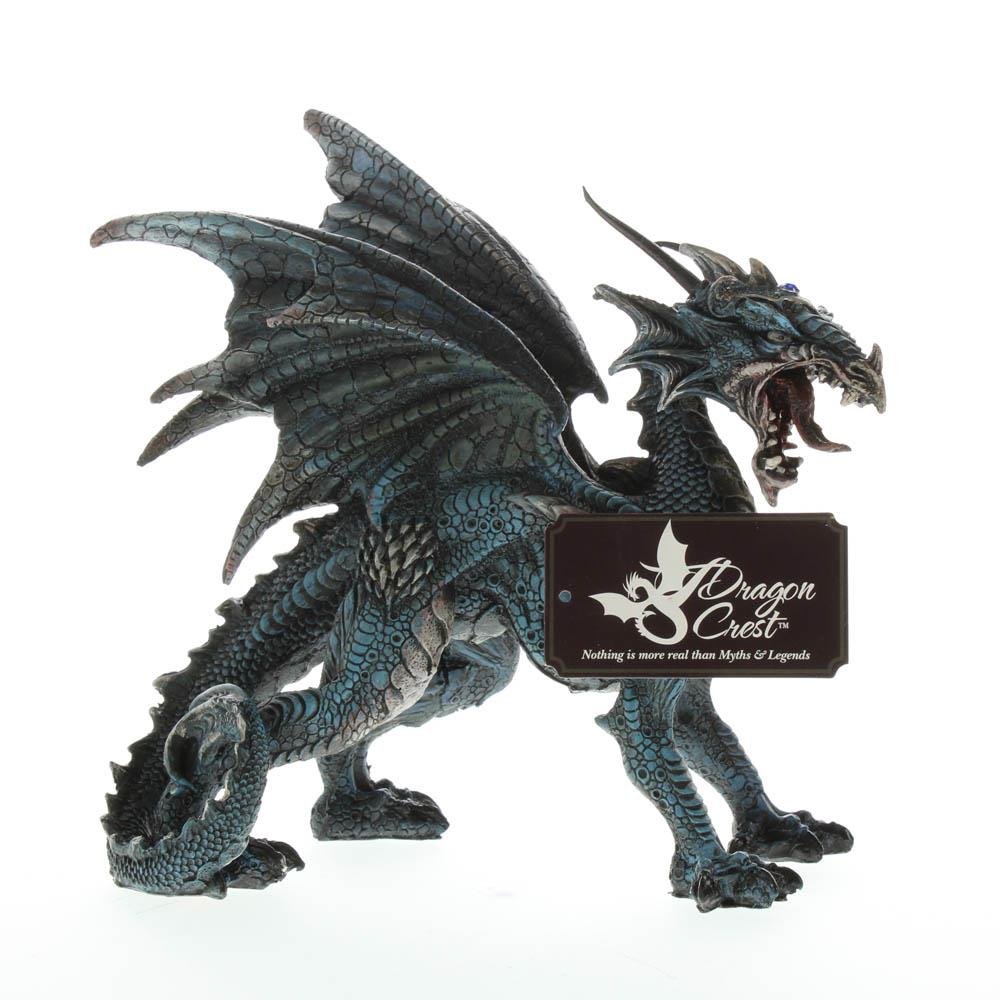 Add some fierce style to your bookshelf or desk with this fantastical dragon statue. This finely detailed beast stands on all four with wings spread, and is captured mid-roar. Item weight: 0.8 lb. 8" x 4¢" x 7?" high. Polyresin. UPC: 849179025632.