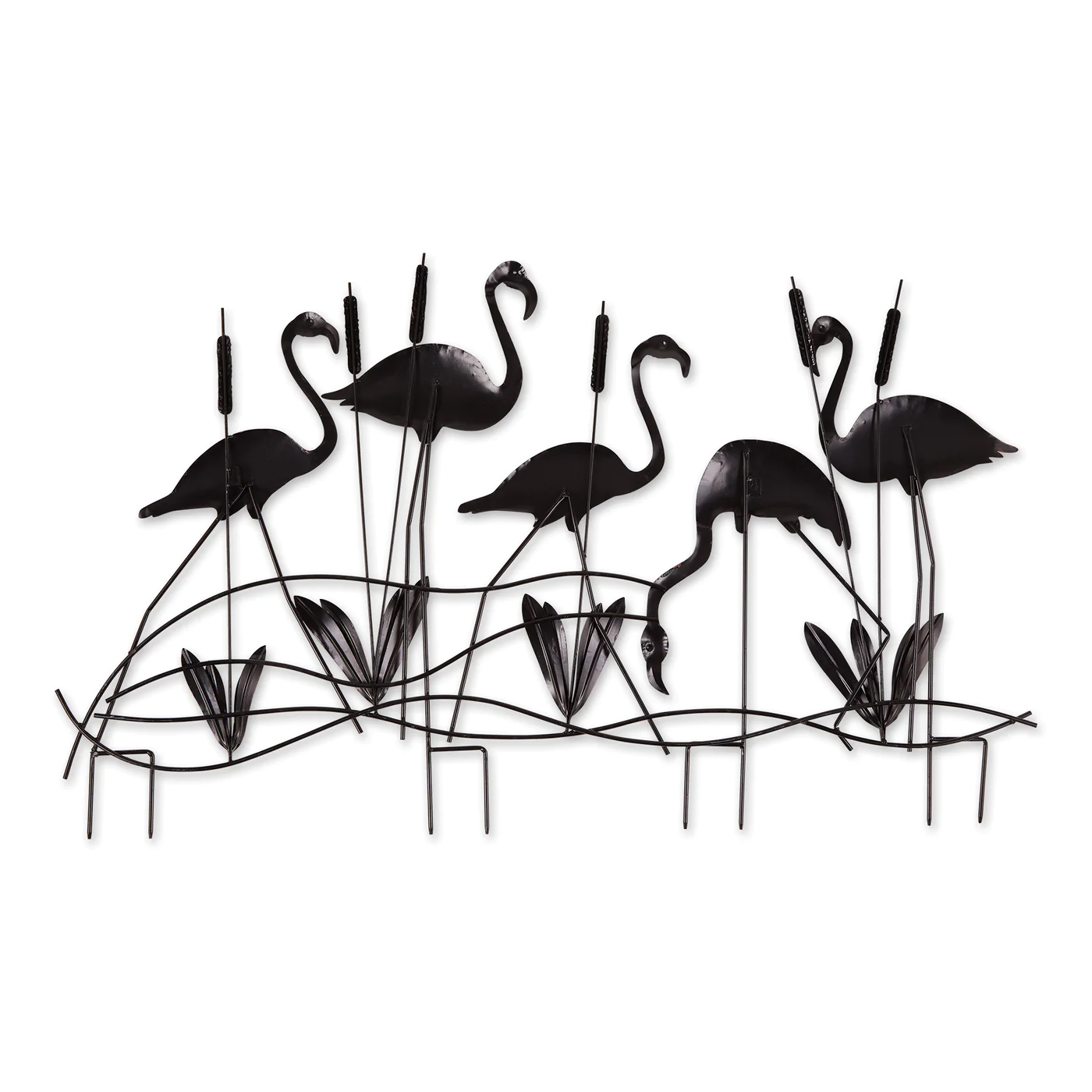 Liven up your outdoor living space with a flock of flamingos! This delightful garden stake features cattails and five glorious pink flamingos captured mid-strut.