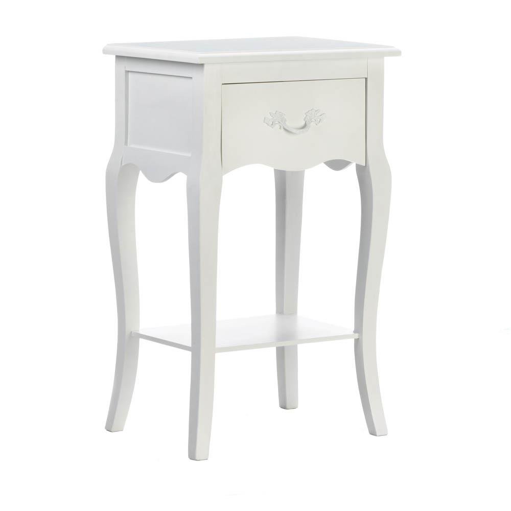 This romantic country nightstand fits nicely anywhere, whether it's tucked next to your bed, or in the children's room. Featuring one drawer and a lower open shelf, this table's white finish makes a timeless addition to your space.