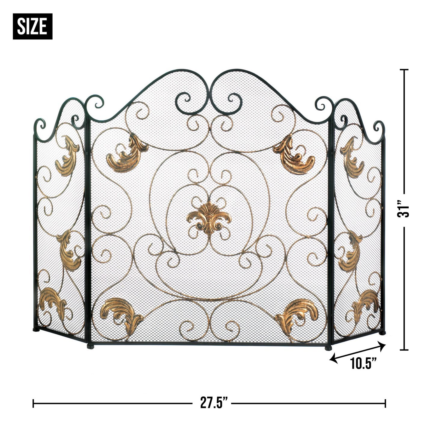 Golden Fleur-De-Lis styled screen weighs 10.2 lbs. and measures 27.5 inches by 10.5 inches by 31 inches.