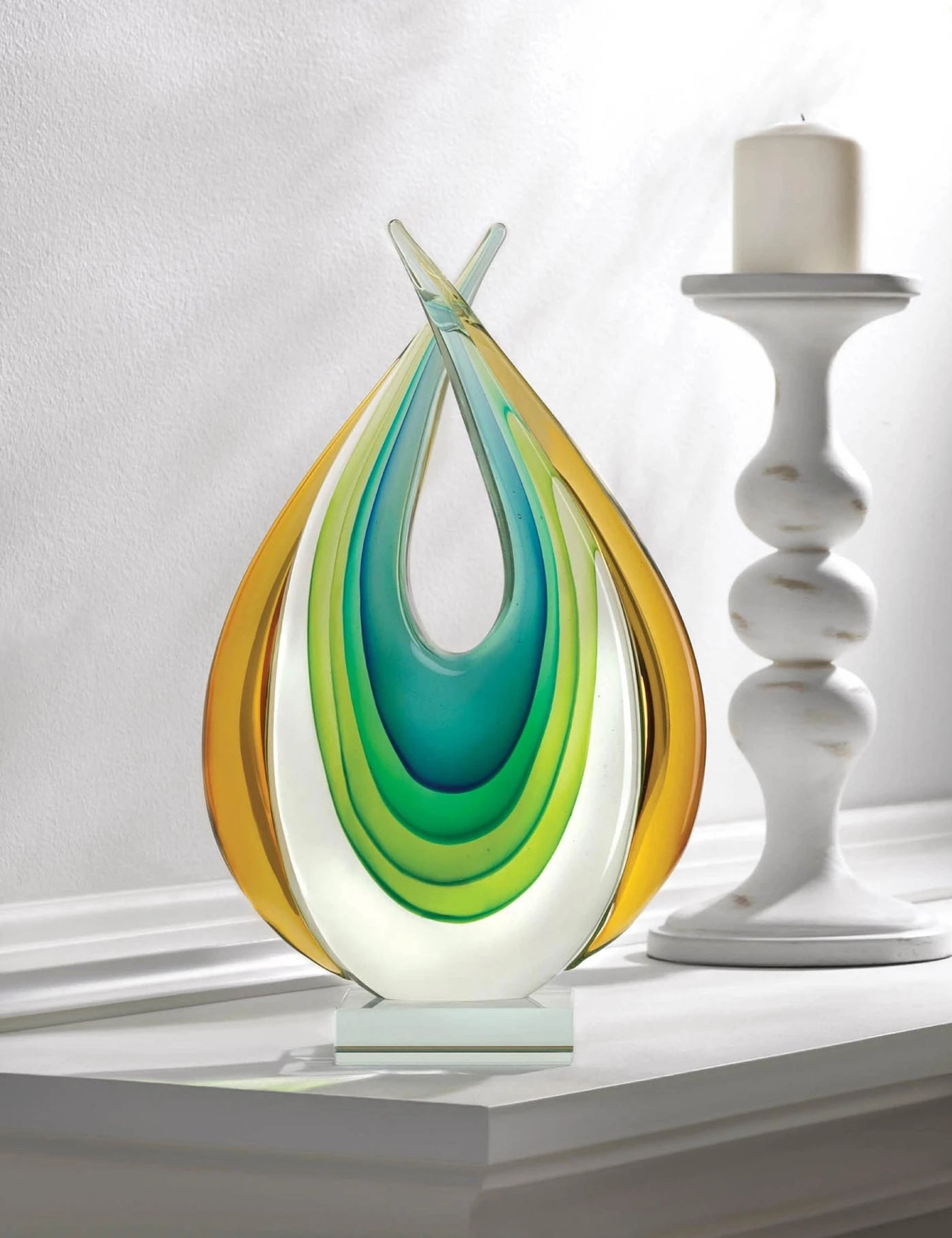 Modern glass art weighs 4.8 lbs. and measures 7.25 inches by 3.25 inches by 11.25 inches.