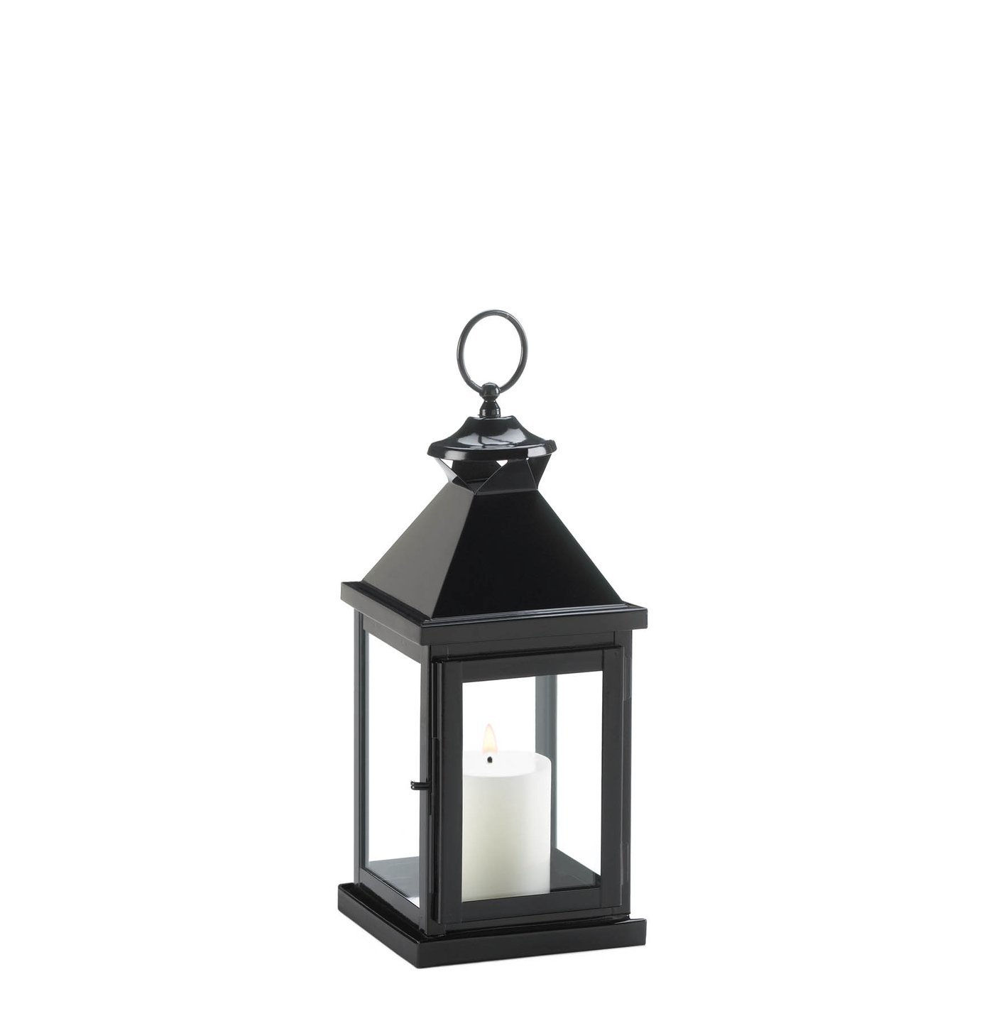 Glossy finish lantern weighs 2.4 lbs. and measures 5.5 inches by 5.75 inches by 14.25 inches.