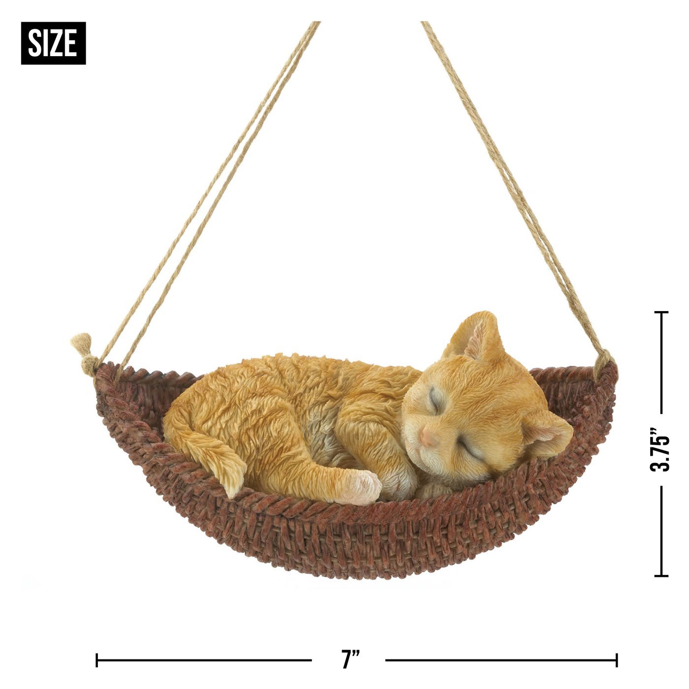 A cute décor piece to brighten up your day, this hanging kitty figurine is a must-have for any cat lover. Suitable for indoor and outdoor display, this cat figurine features an adorable orange tabby taking a catnap in a hammock. Hang this cat figurine from your kitchen window or front porch to enjoy a daily dose of cuteness or give as a unique gift to the animal lover in your life.