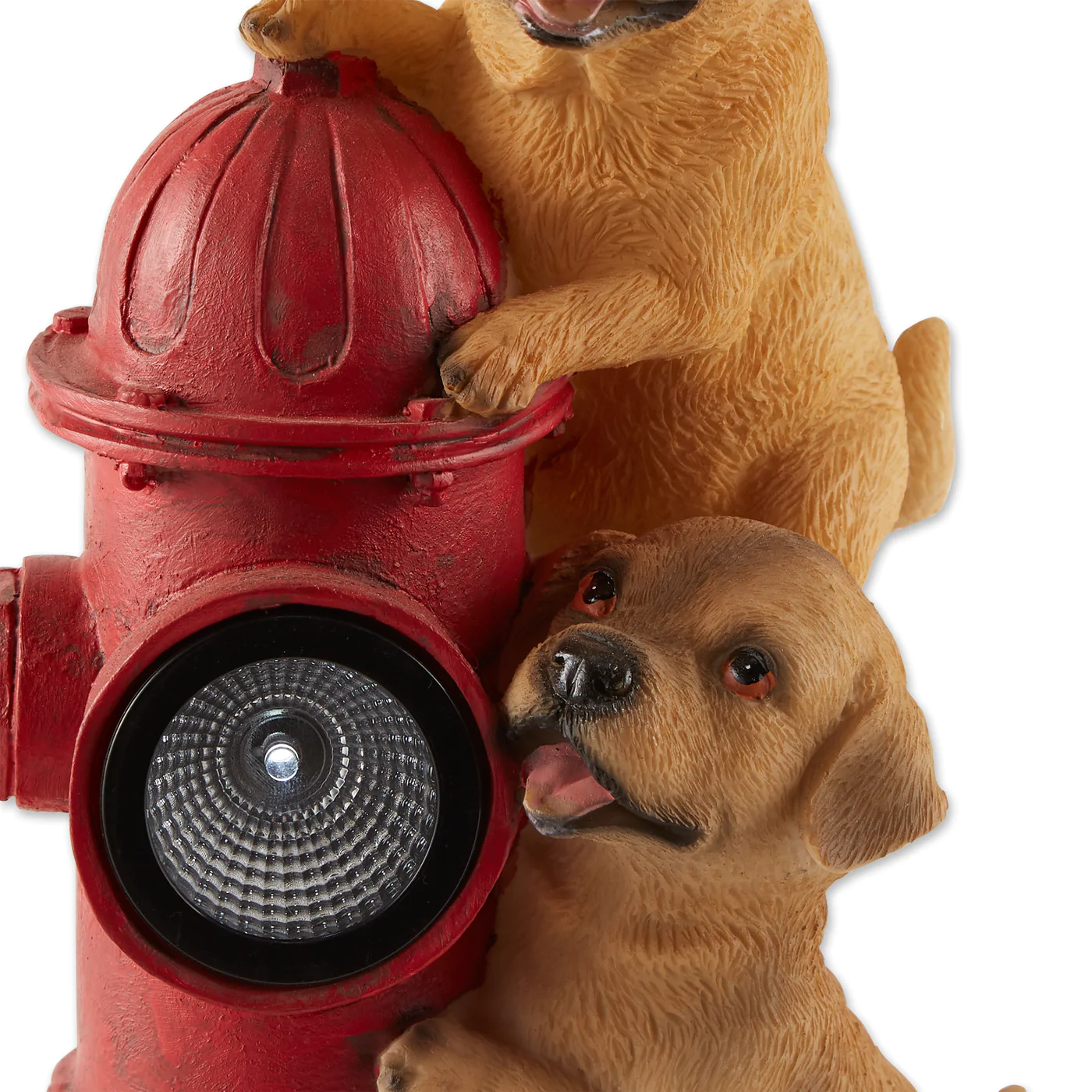 Liven up your outdoor space with this adorable puppy solar light statue featuring two cute pups climbing on a fire hydrant. This adorable solar statue is a great addition to your front walk, garden, or patio.