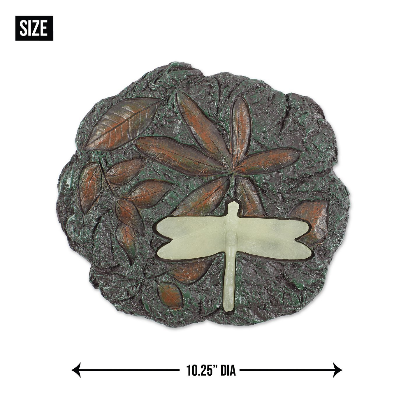 The stepping stone weighs 2.4 lbs. and measures 10.25 inches in diameter and 0.5 inches thick.