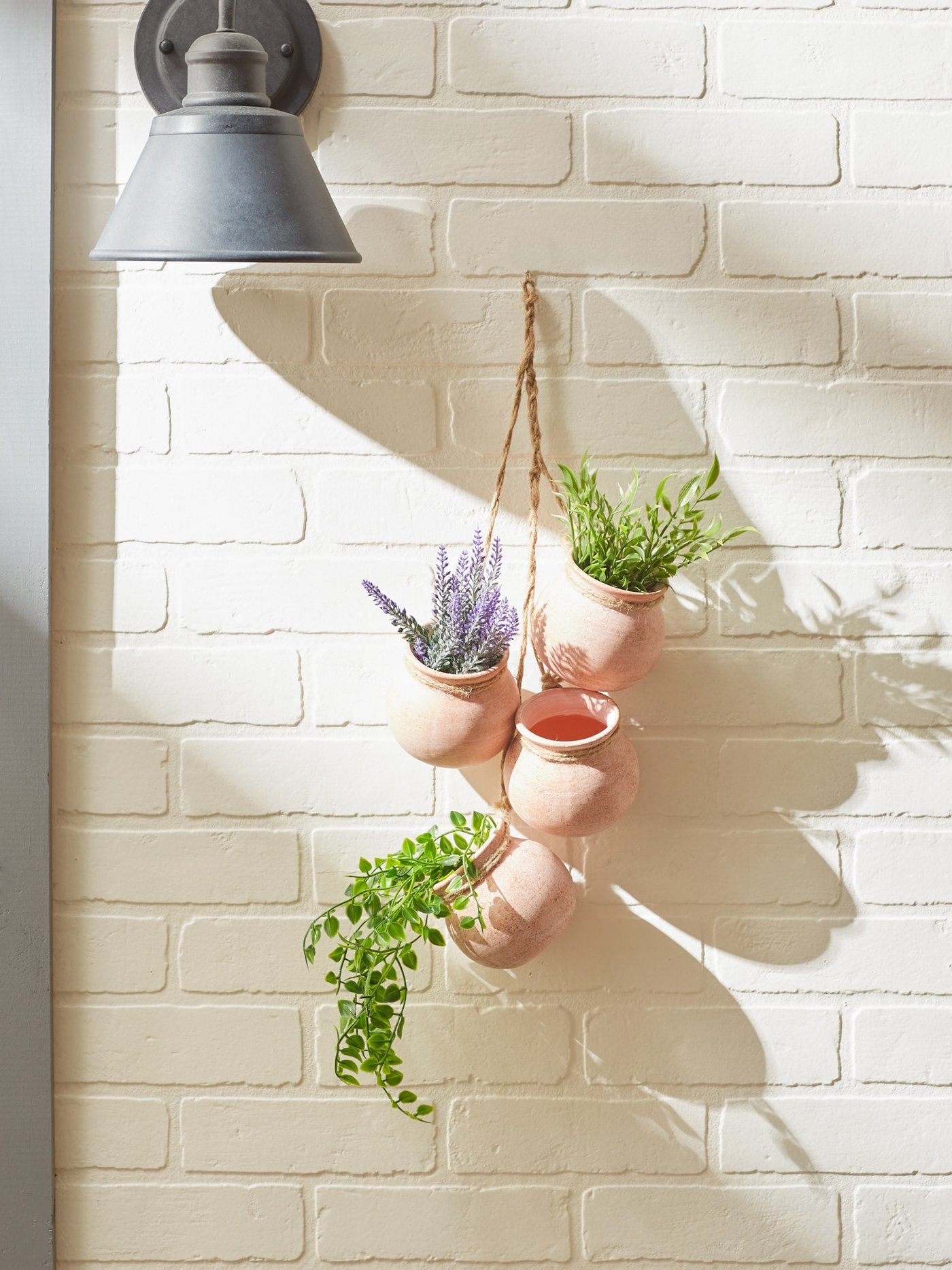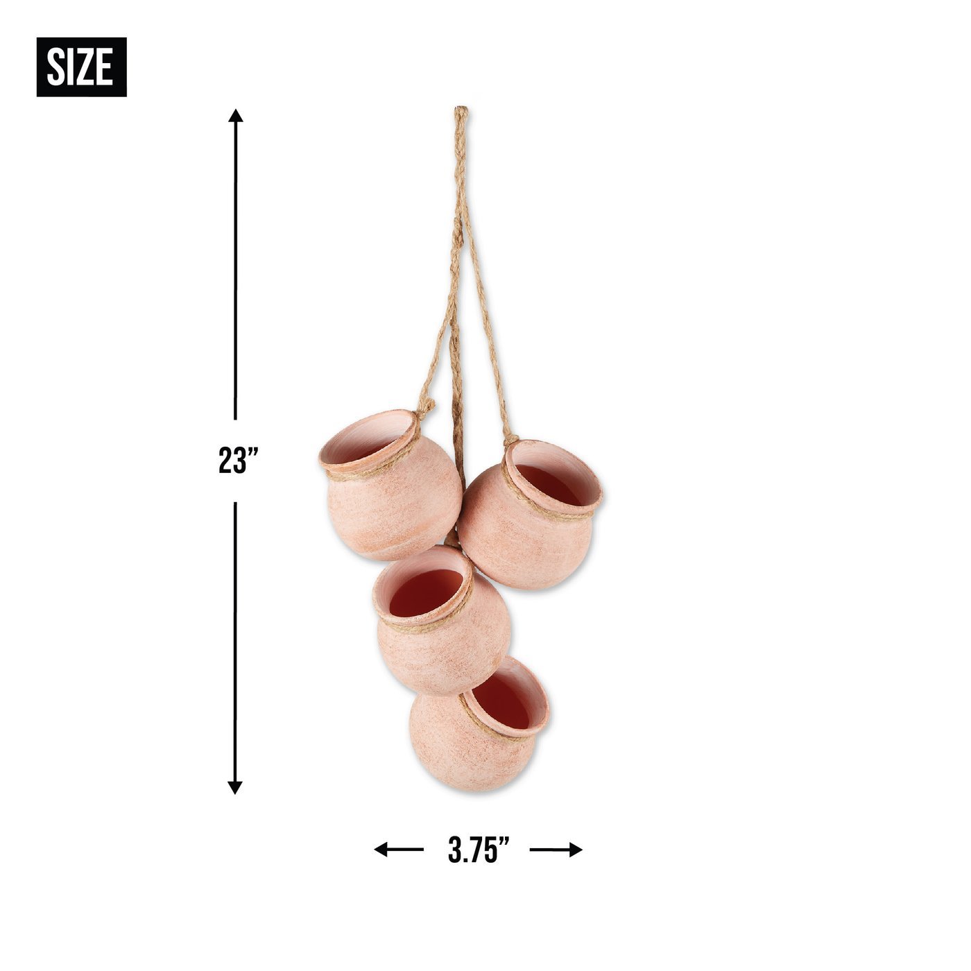 Straight from the kitchen of a Santa Fe gourmet, this darling decoration recalls the fabled cooking pots treasured for generations in the Southwest. Four graceful earth tone vessels with jute hanging loop are ready to brighten any corner.