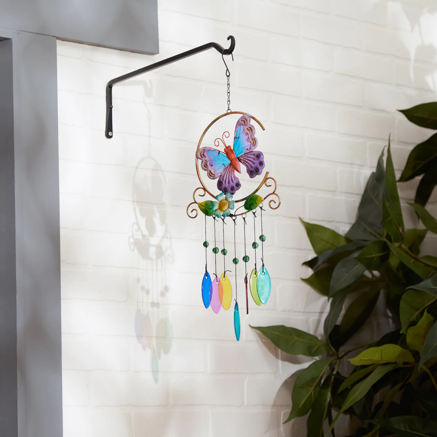 Cheer up your garden or porch space with this butterfly wind chime. Enjoy warm spring and summer days watching the light reflect from the colored glass.