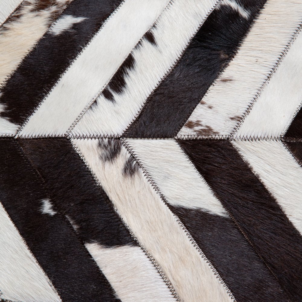 This remarkable pouf effortlessly combines modern design with the rustic charm of genuine cowhide. The distinct chevron pattern adds a touch of sophistication to any space, making it a versatile accent for both traditional and contemporary interiors. It can be used as a seat, ottoman, or even a table without taking up too much floor space. Variations in color are to be expected as this item is crafted from genuine cowhide, making it a one-of-a-kind piece.